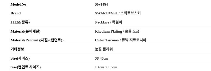 | 7. 주요 사양 | 로듐 도금 목걸이 |