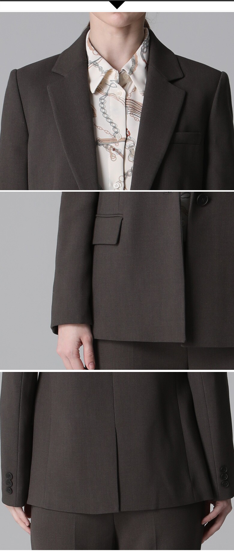 베이직한 핏감에 딱 떨어지는 라인으로 멋스러운 싱글 원버튼 셋업 재킷입니다