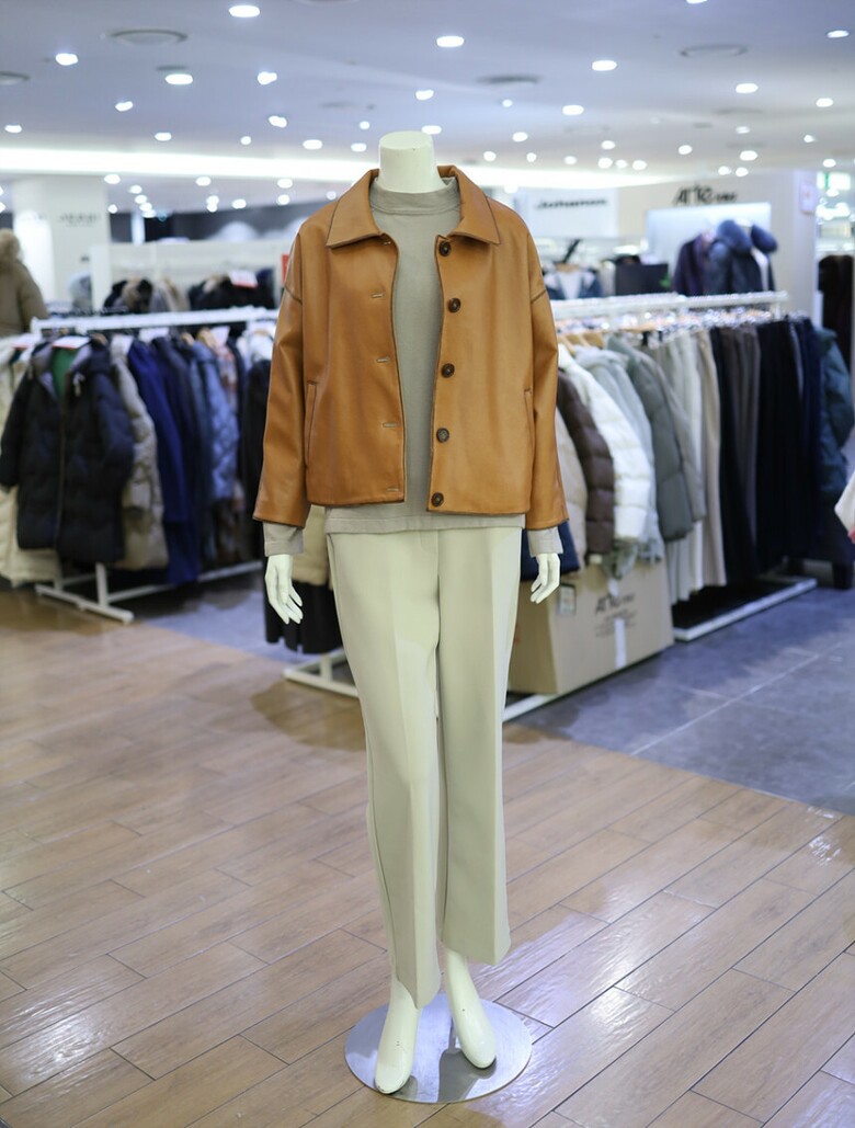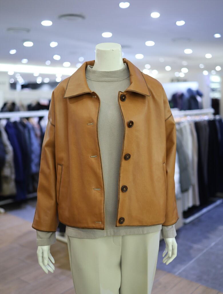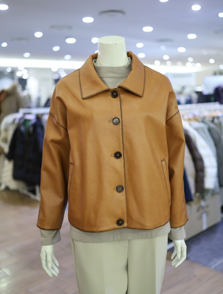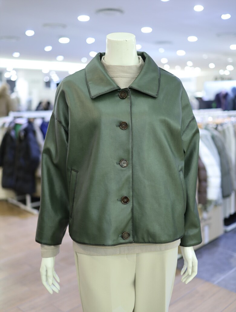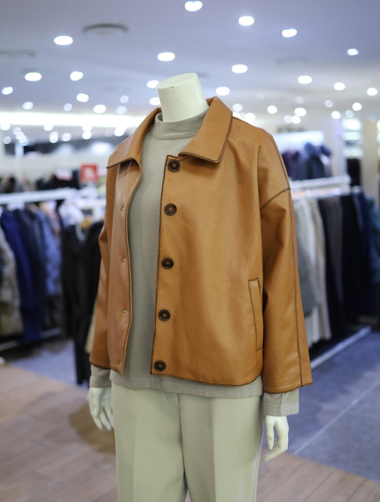 세련된 컬러감이 돋보이는 페이크레더 자켓!