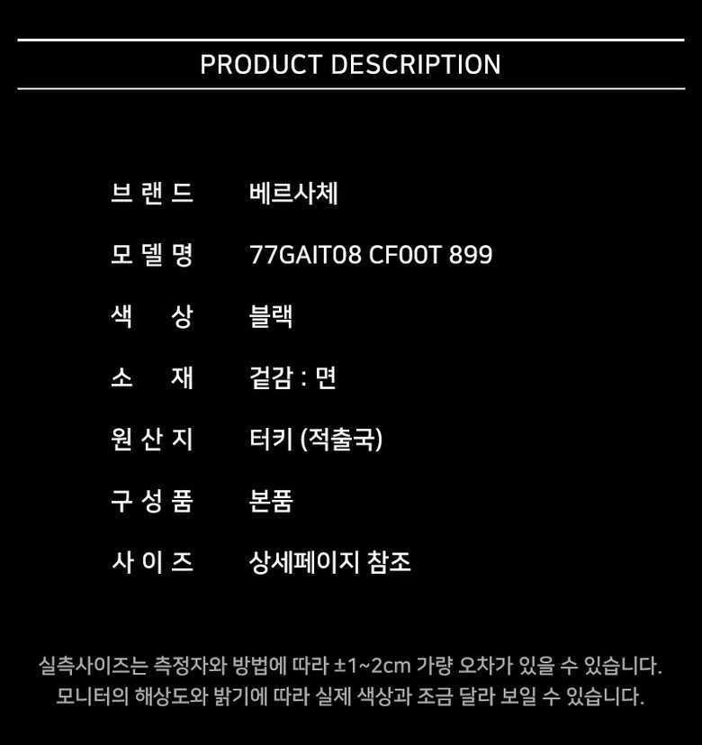 | 1. 제품 소재 (섬유의 조성 또는 혼용률을 백분율로 표시, 기능성인 경우 성적서 또는 허가서) | 상세페이지 참조 |