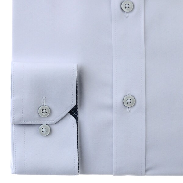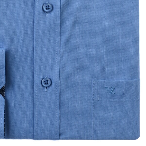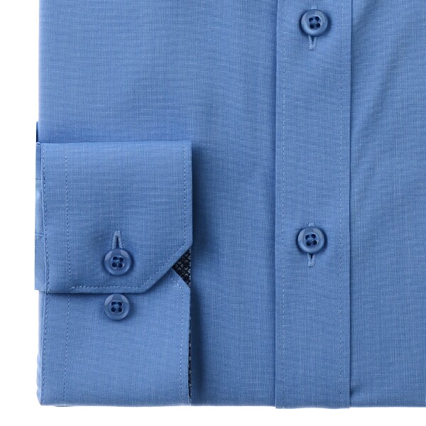모달폴리 스판 필라필 원단을 사용하여 필라필 소재 특유의 은은한 투톤 느낌으로터치감이 부드럽고 쾌적하며 통기성이 좋은 카라,커프스 안쪽에 배색을 넣은스트레치 솔리드 일반핏 긴소매