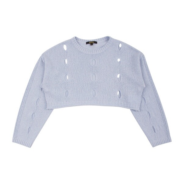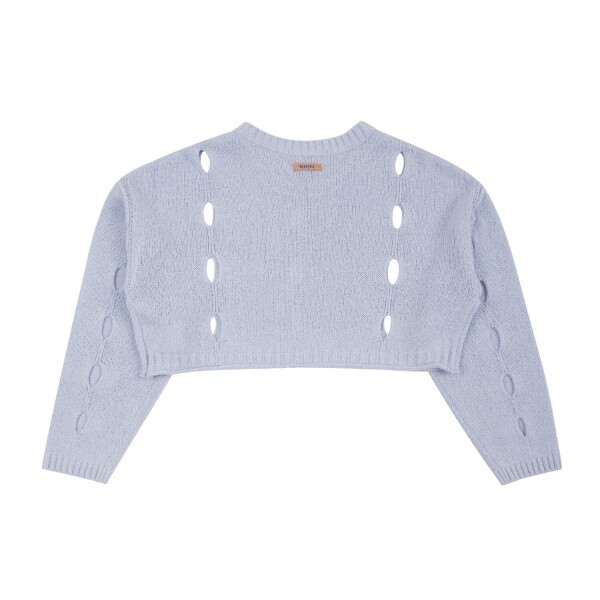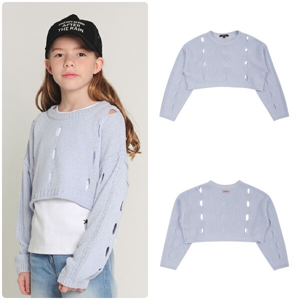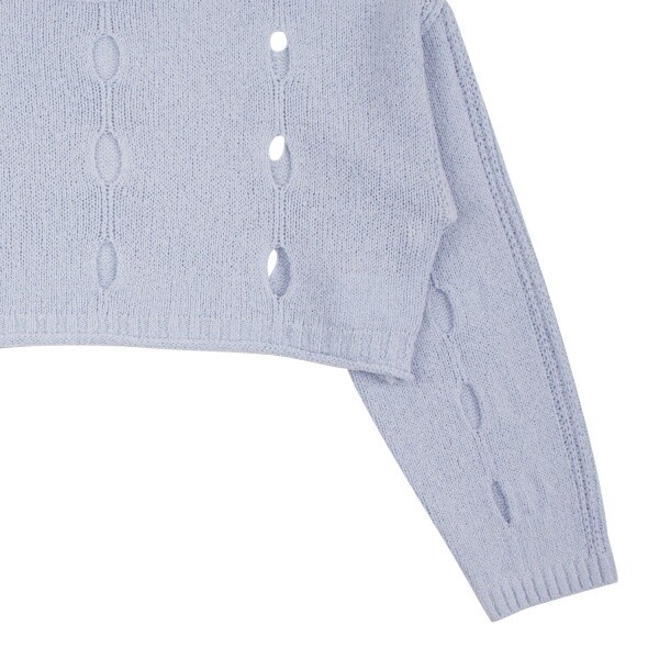 라이트한 바이올렛 컬러로 제안한 크롭 니트 입니다. 아크릴 원사를 꼬아 부클 효과를 주어 가슬가슬하고 시원한 착용감이 돋보이는 가벼운 레이어드 아이템입니다.