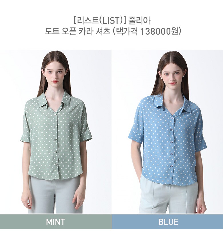 [리스트(LIST)] 줄리아 도트 오픈 카라 셔츠 (택가격 138000원)
