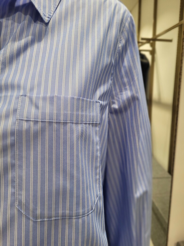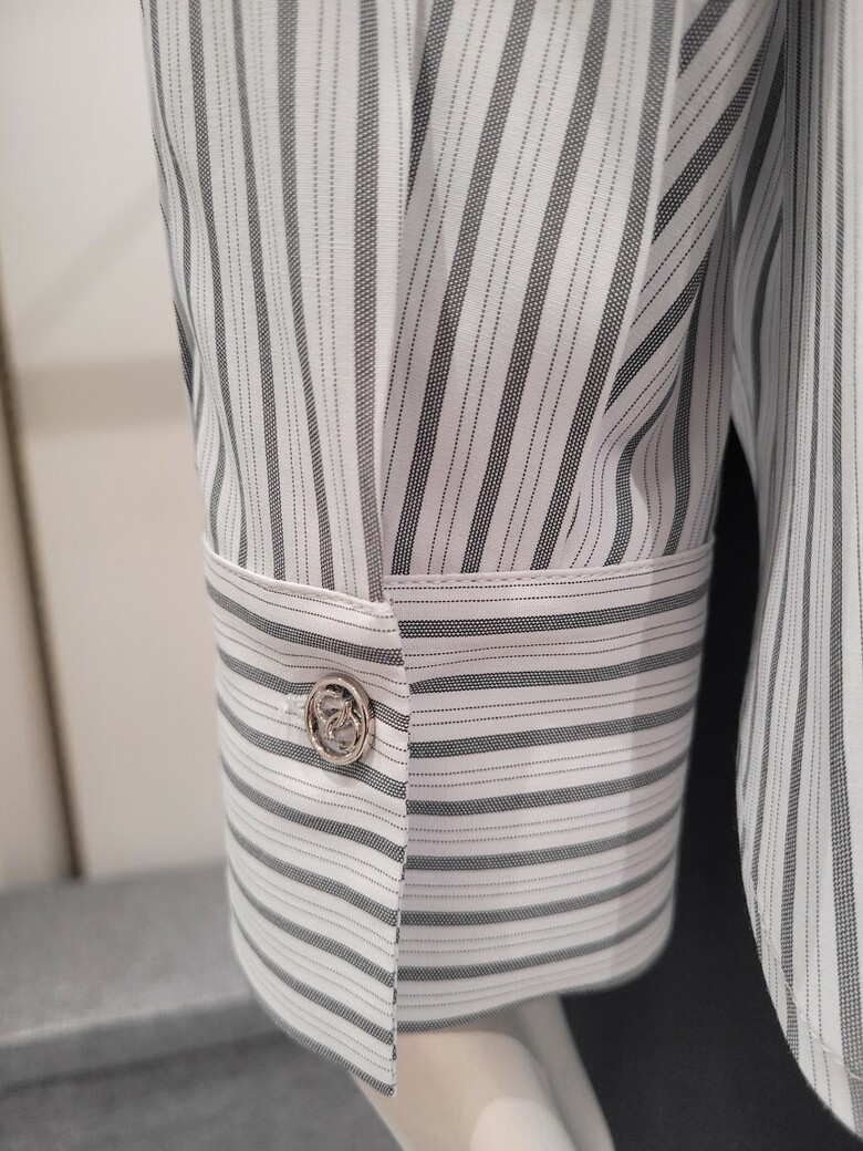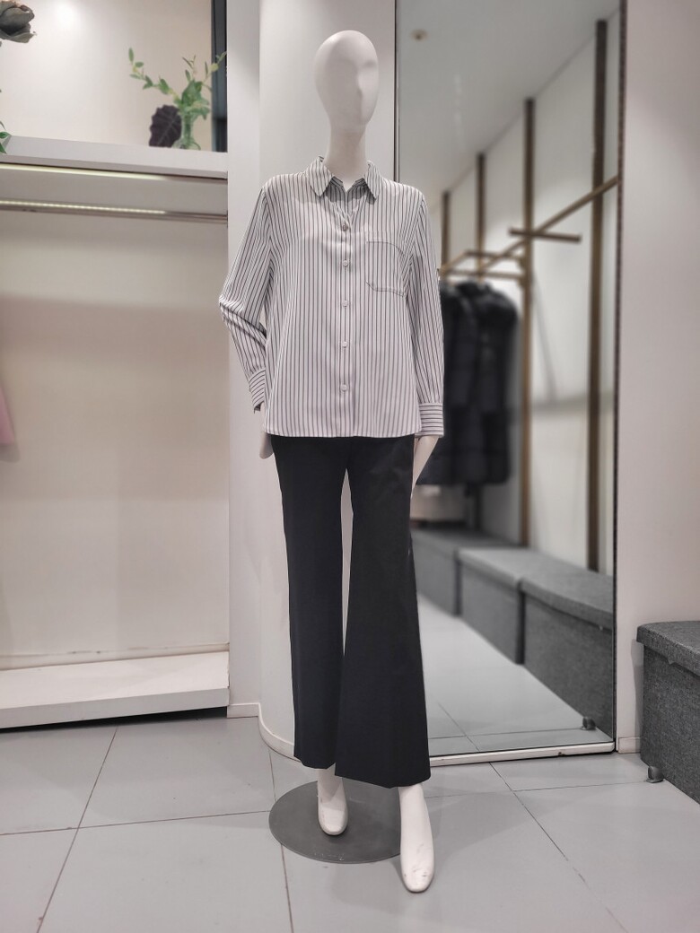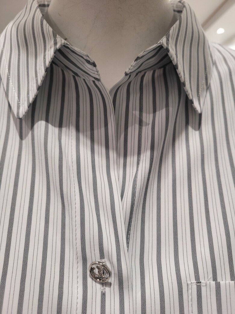 [온앤온] V넥 카라 스트라이프 블라우스 NJW5SB207