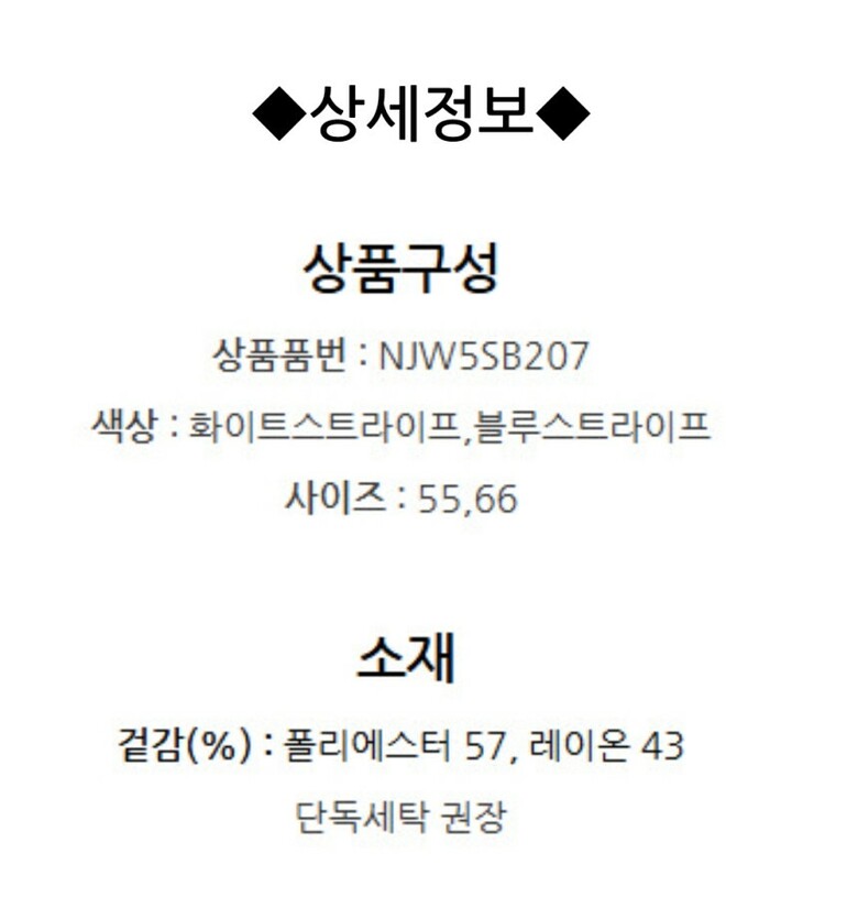 | 6. 세탁방법 및 취급시 주의사항 | 상품상세참조 |