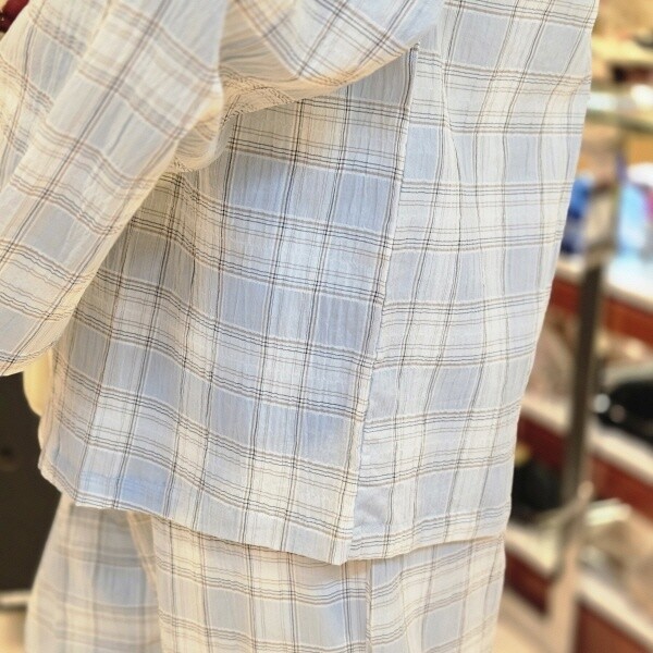 선염면 요루 소재를 사용한 남성잠옷으로 쾌적한 착용감을 느낄 수 있으며 레이온 혼용으로 거친 촉감을 완화 시킨 하절까지 무난한 아주 가벼운 제품