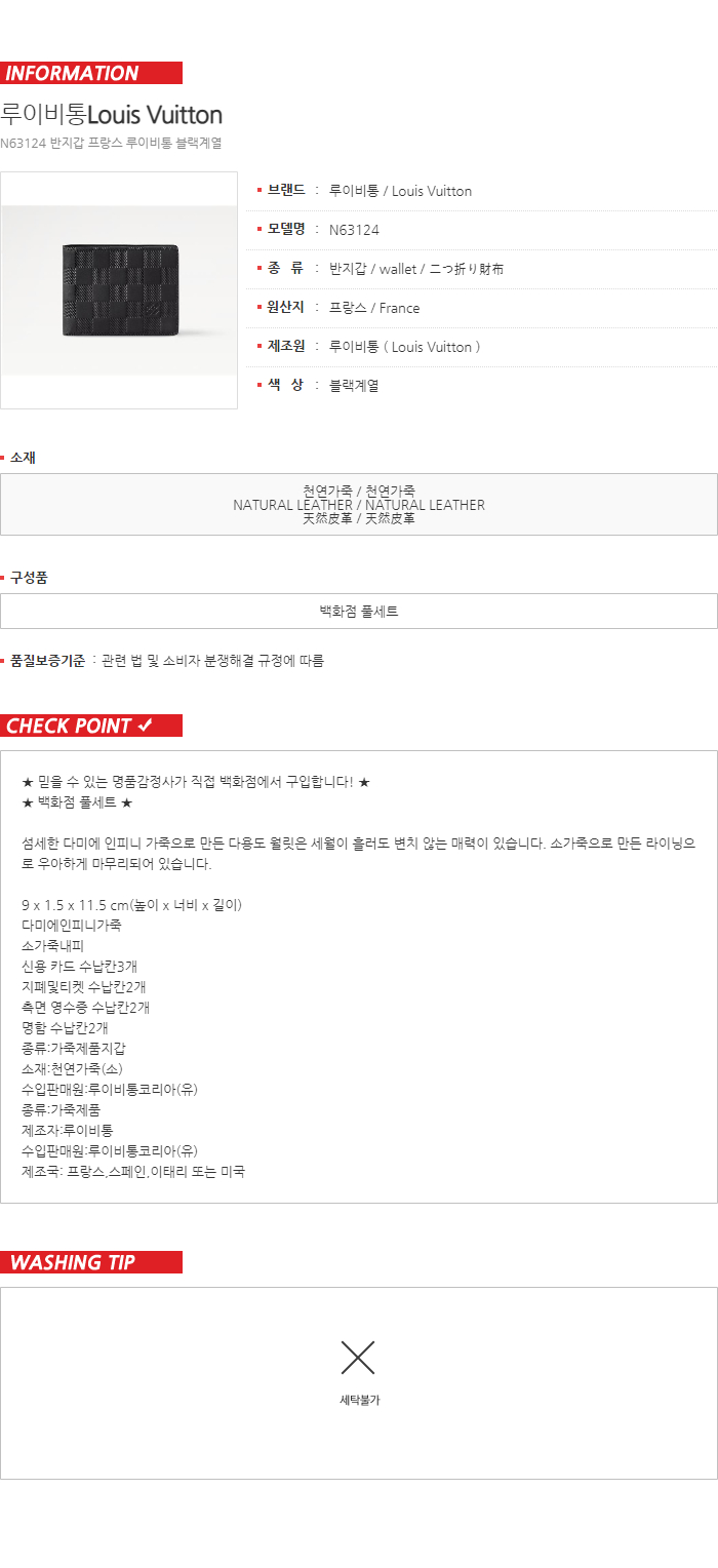 [명품] 루이비통 남자 반지갑 멀티플 월릿 다미에 인피니 블랙 N63124