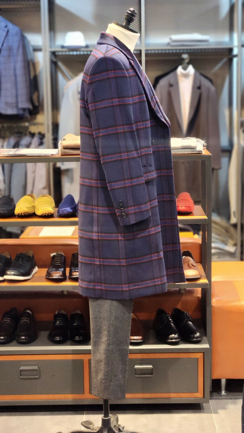 F/W 워모&바루리 블루 체크 더블 코트