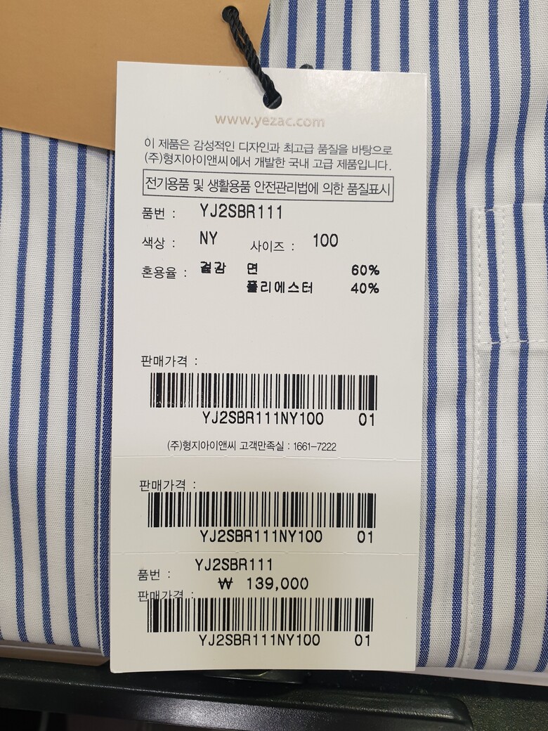 [예작셔츠] 면혼방 스트라이프 일반핏셔츠 YJ2SBR111NY