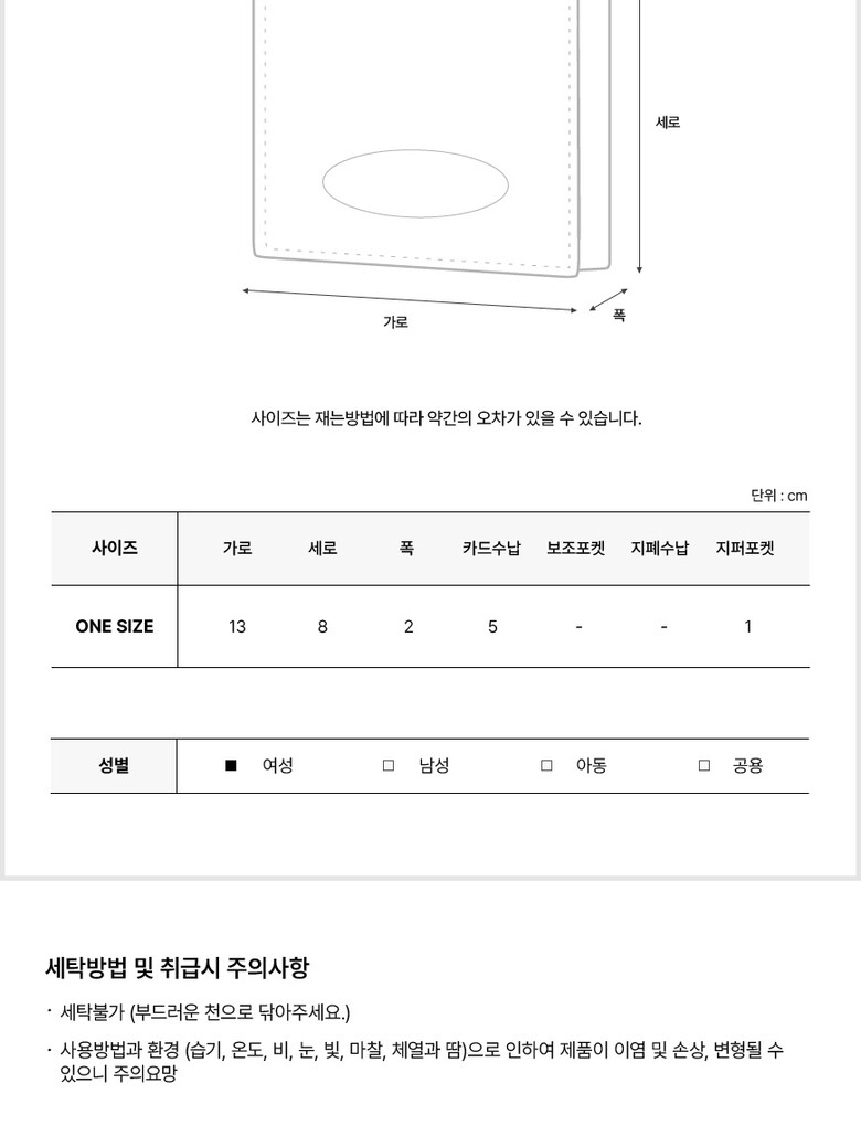 3. 치수 | 가로 13 cm X 세로 8cm X 폭 2 m |