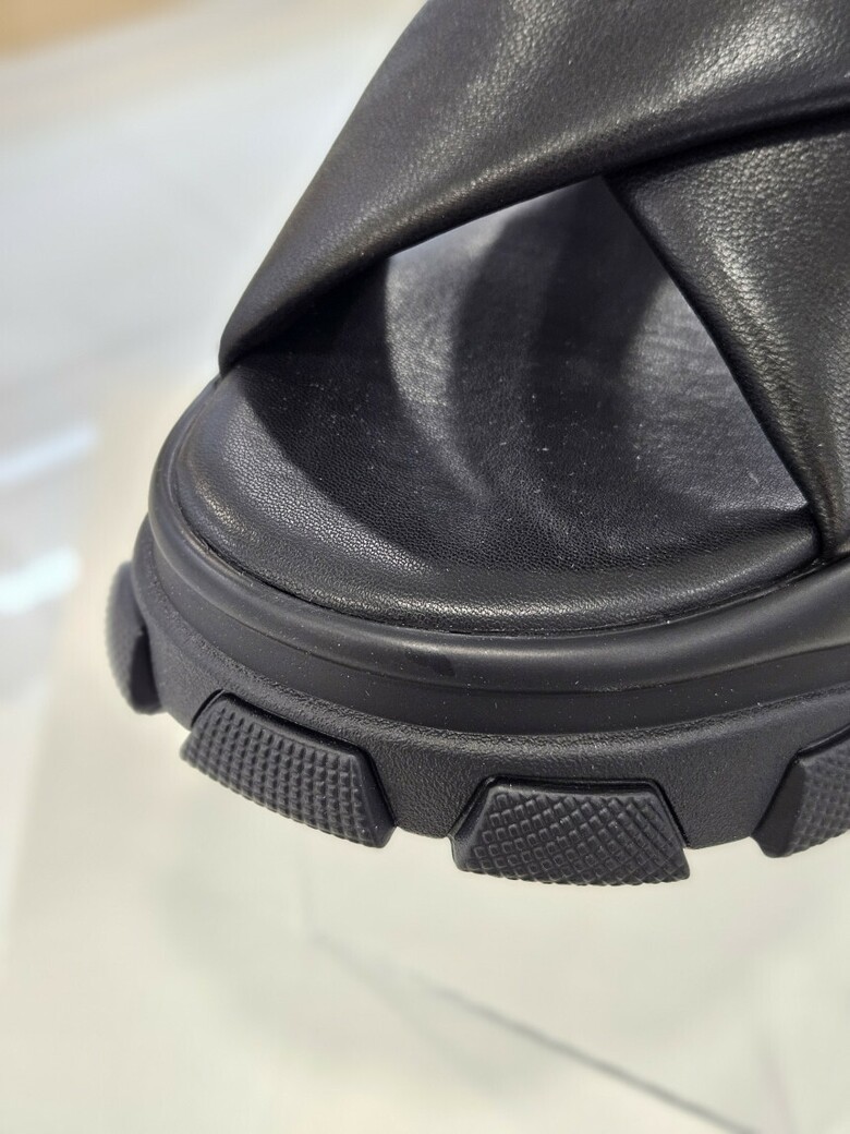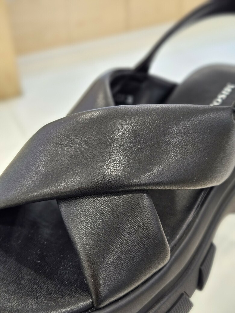 어글리 창과 양가죽의 스크랩 라인의 샌들로 포멀한 느낌의 여성 샌들