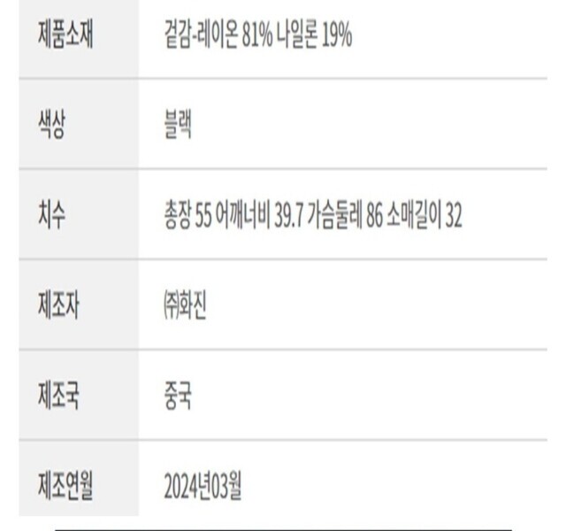 | 1. 제품 소재 (섬유의 조성 또는 혼용률을 백분율로 표시, 기능성인 경우 성적서 또는 허가서) | 상품상세참조 |