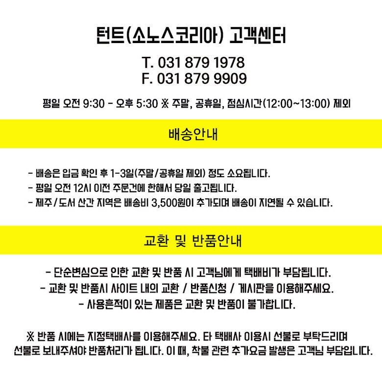 • 모든 규정은 전자상거래법에 의거하며, 택배사정으로 배송이 지연된 경우 재화를 공급받은 날로부터 7일 이내에 반품 가능합니다.
