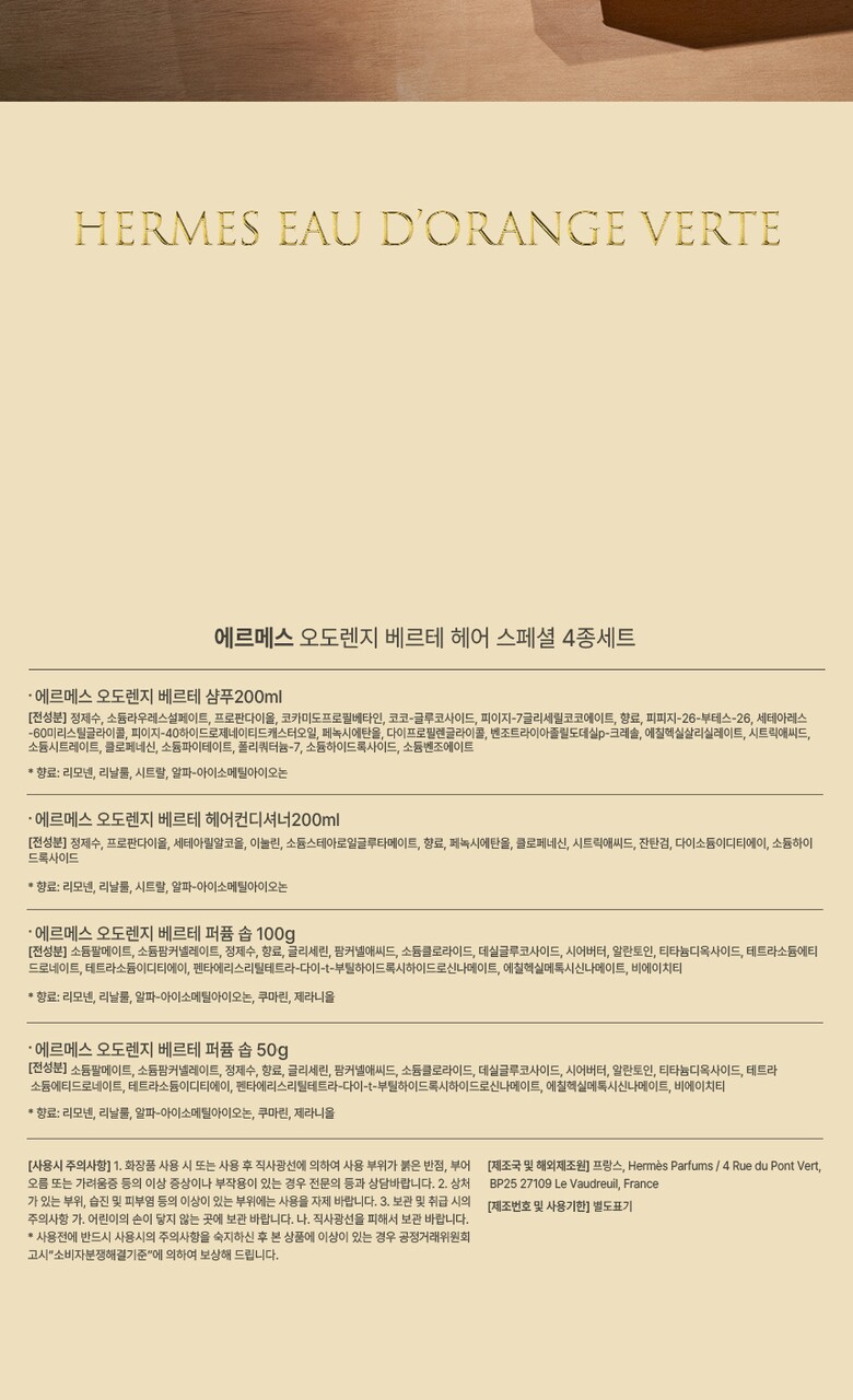 [에르메스] 오도렌지 베르테 헤어 스페셜 4종세트 (쇼핑백 증정)