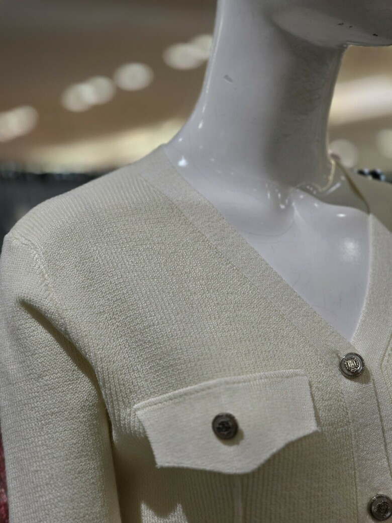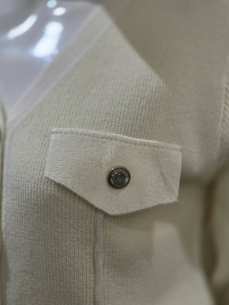 브이넥라인에 플랩디자인과 단추로