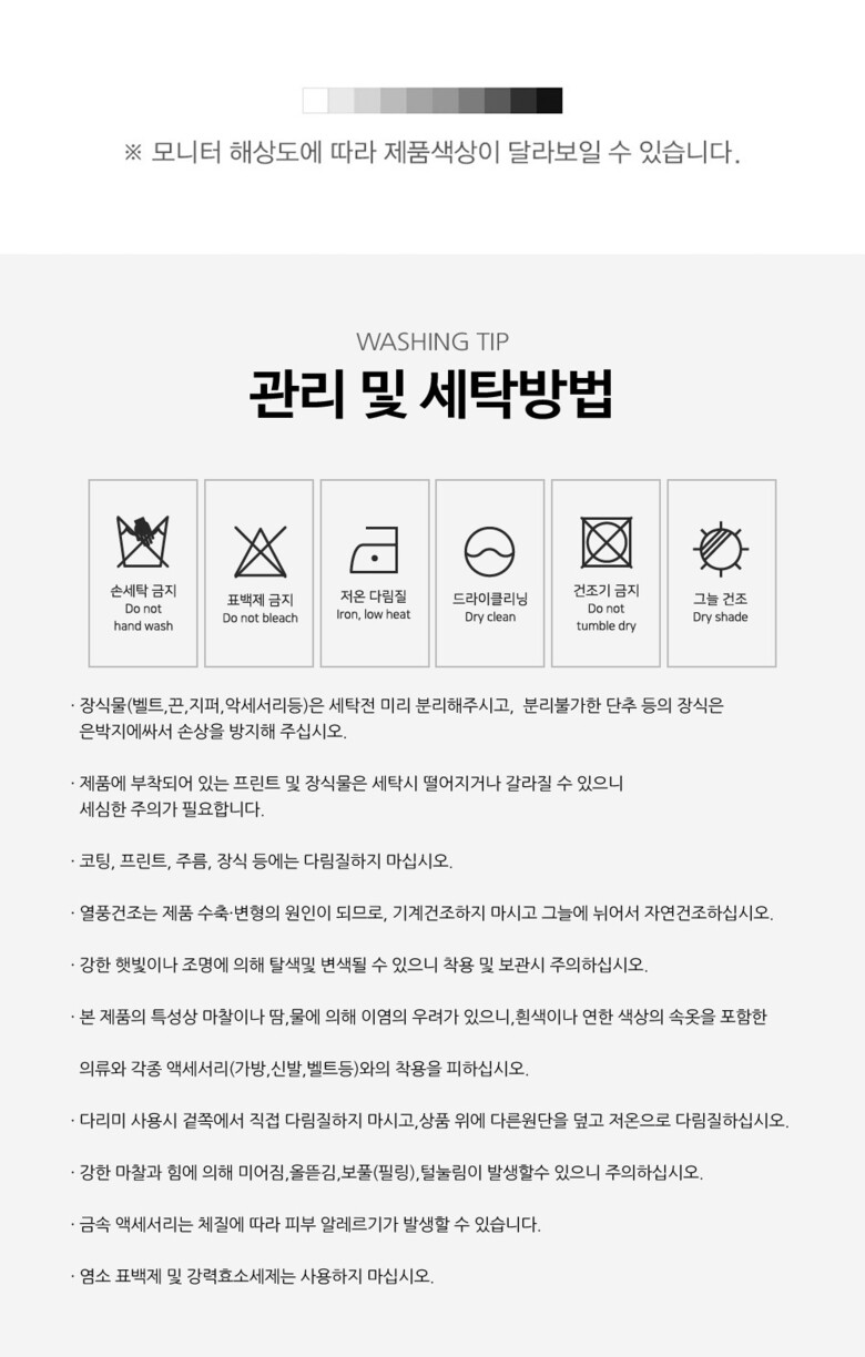 6. 세탁방법 및 취급시 주의사항 | 상세페이지 참조 |