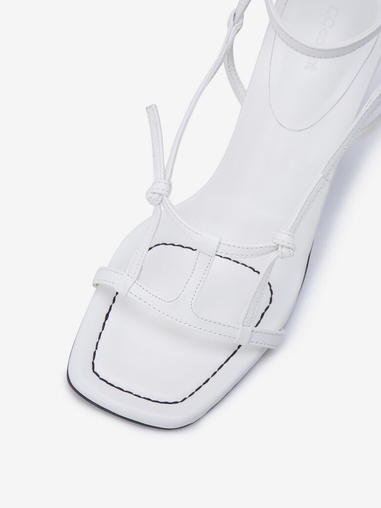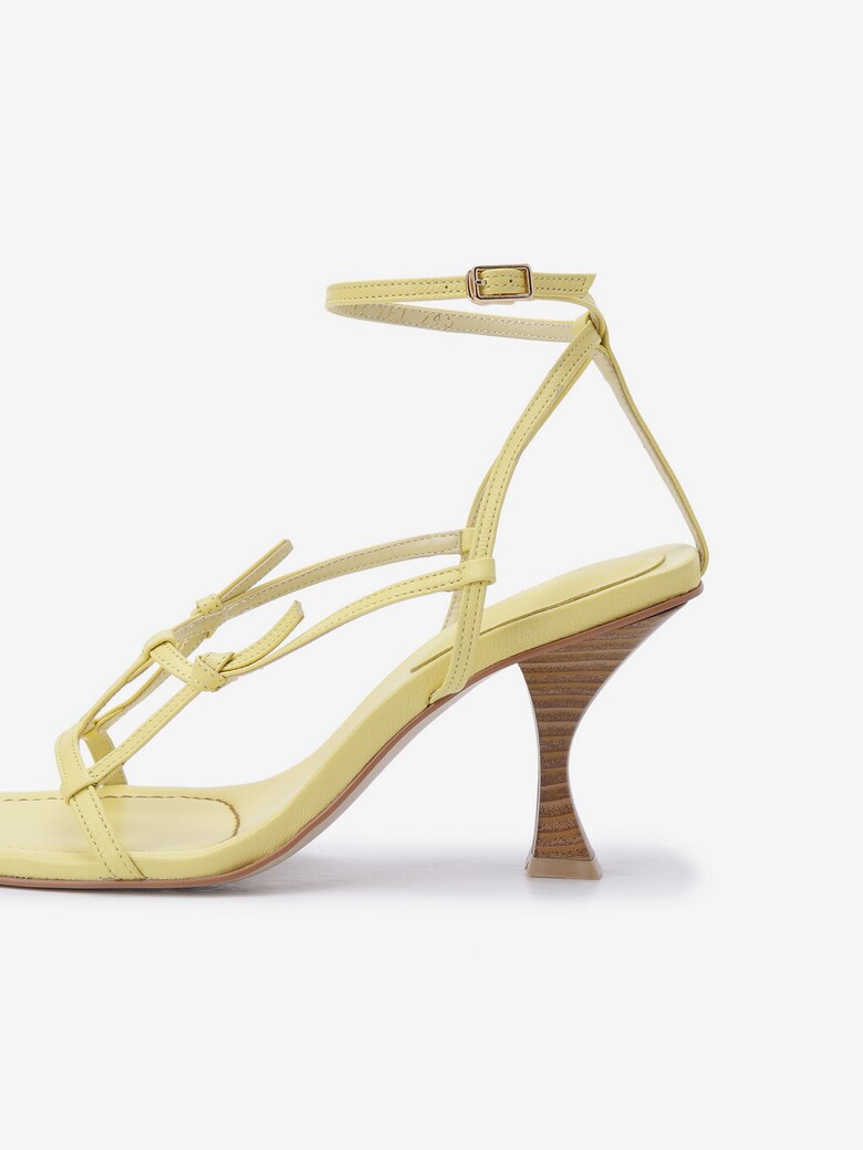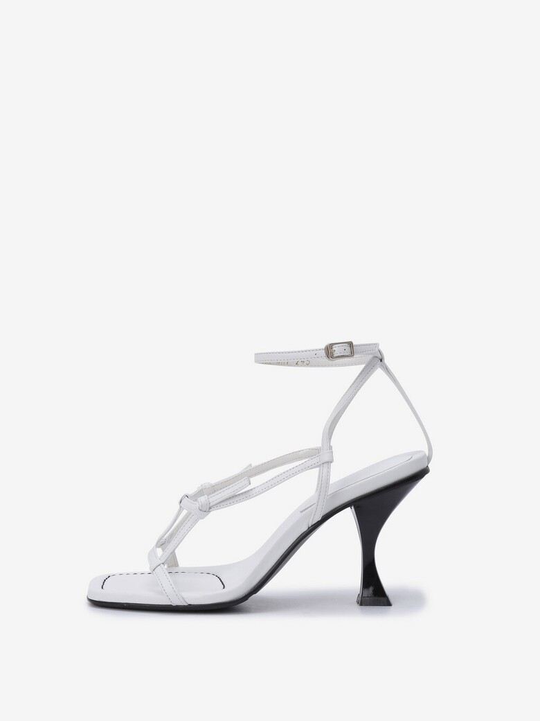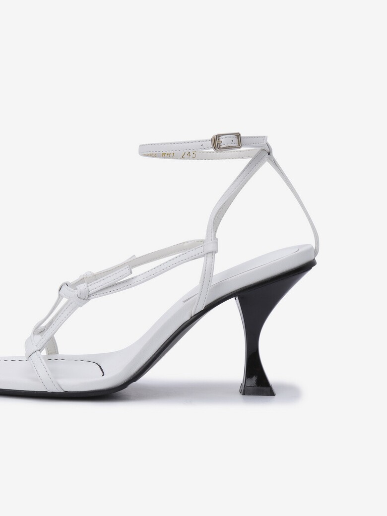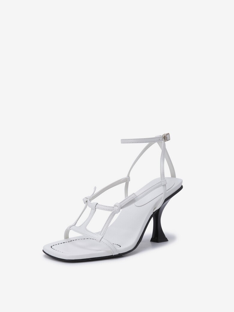 - 스퀘어 토에 얇은 스트랩이 매듭지어 이어진 듯한 디자인의 샌들입니다.
