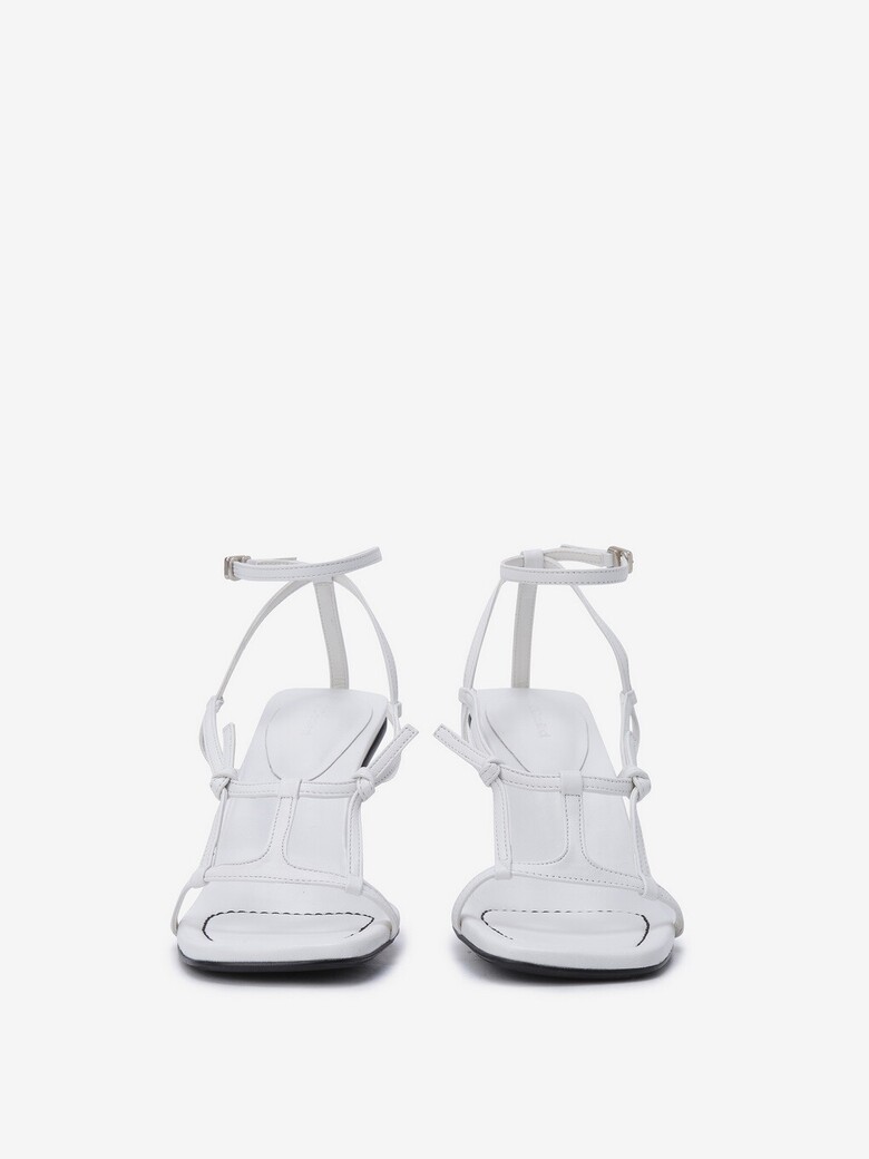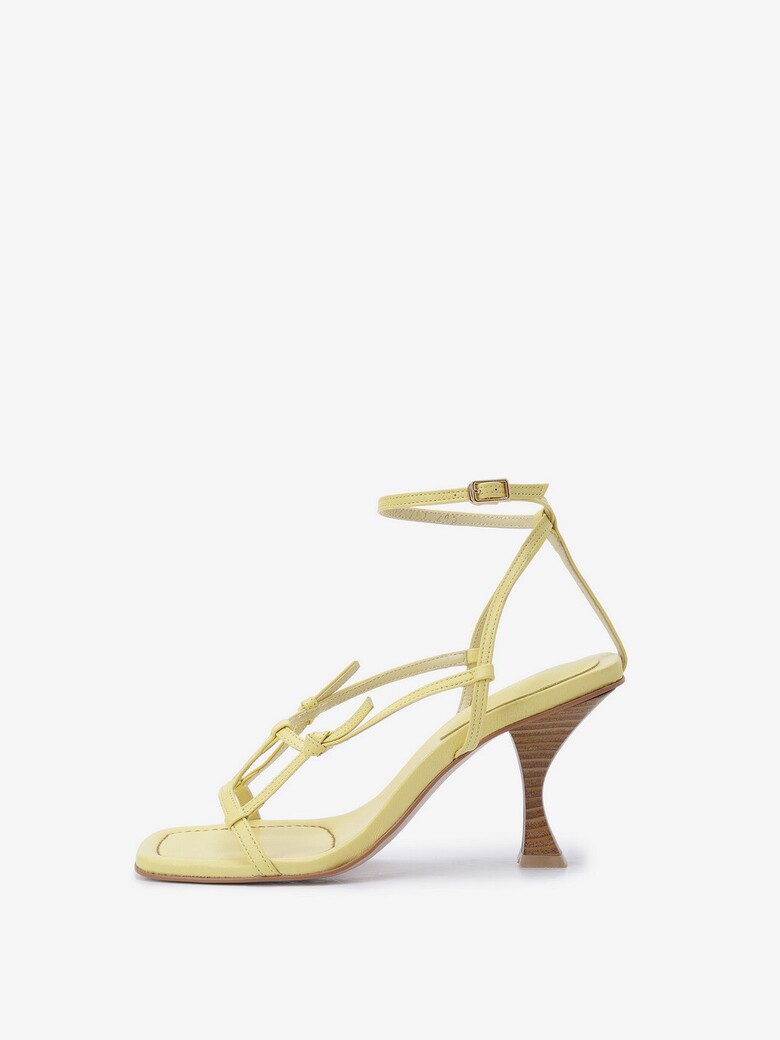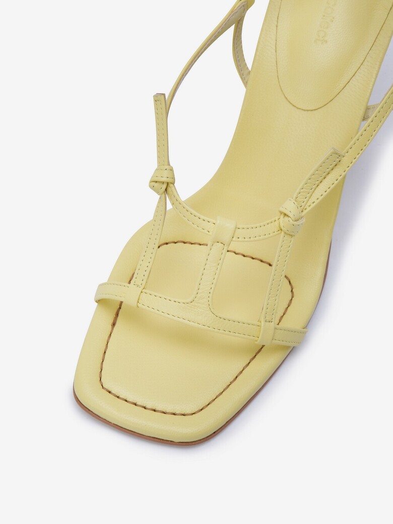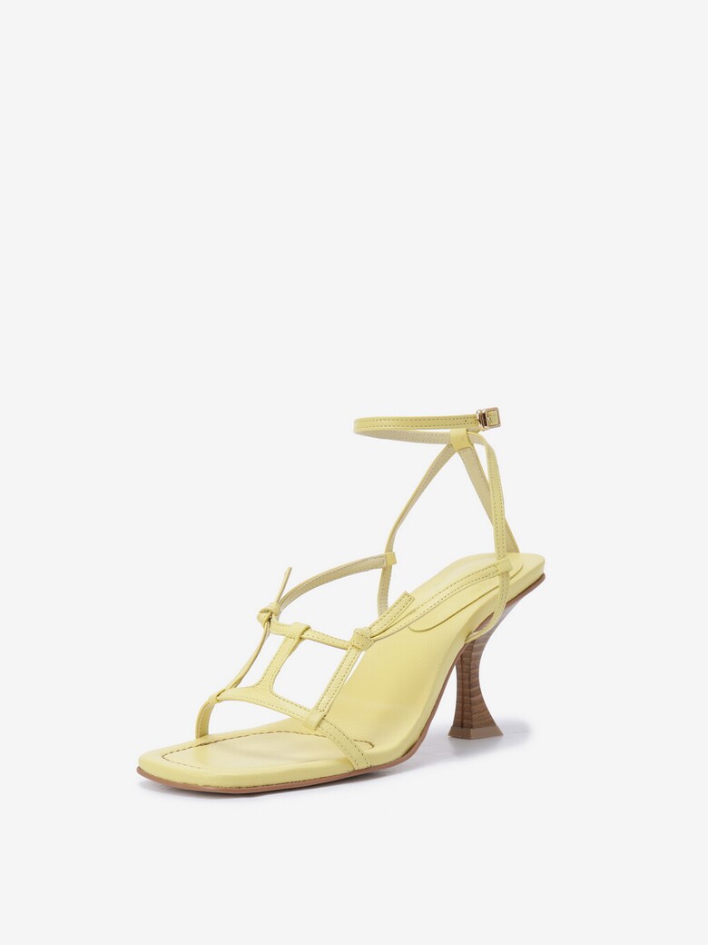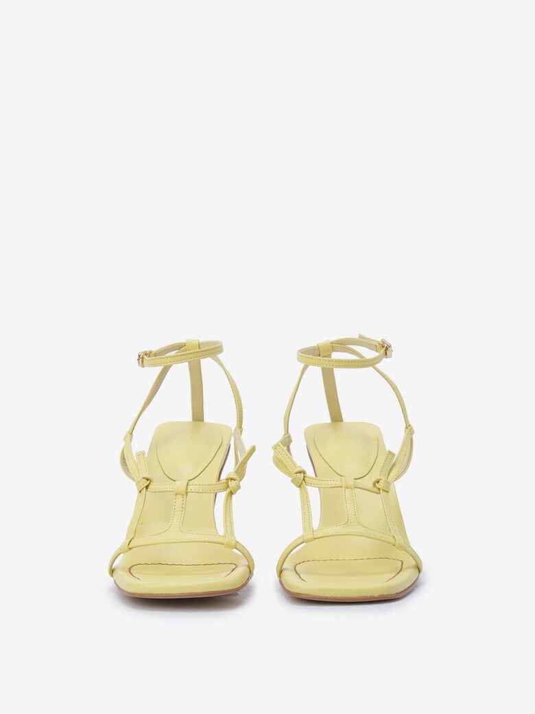 - 스퀘어 토에 얇은 스트랩이 매듭지어 이어진 듯한 디자인의 샌들입니다.