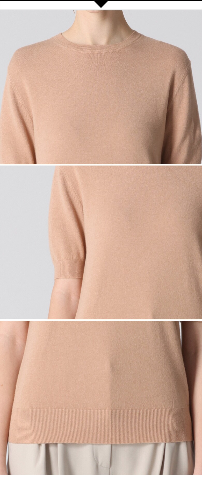 부드러운 소재감으로 착용감이 좋은 라운드넥 반팔 니트입니다.