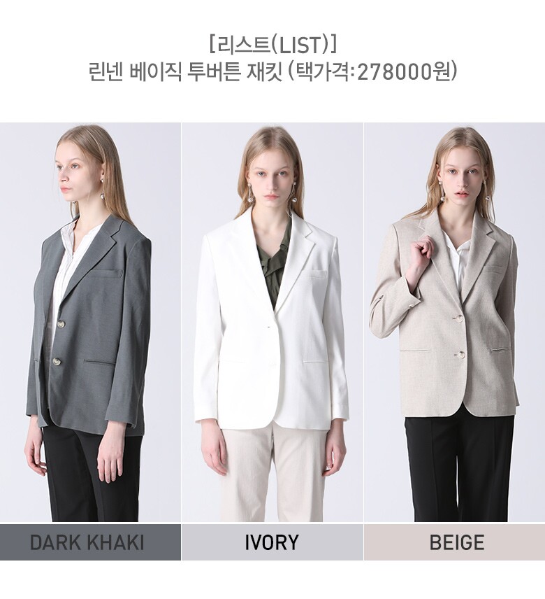 - #리스트 #여성복 #여성복브랜드 #봄여름 #출근룩 #봄여름상품 #데일리룩 #재킷 #린넨자켓 #아우터 #여름아우터 #여름자켓 #얇은자켓 #베이직자켓 #심플자켓 #기본자켓 #투버튼