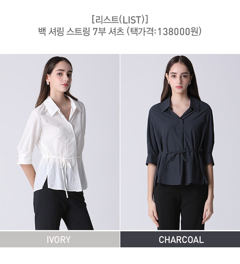 [리스트(LIST)] 백 셔링 스트링 7부 셔츠 (택가격: 138000원)