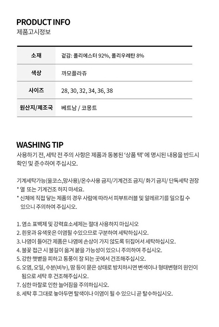 6. 세탁방법 및 취급시 주의사항 | 상세페이지 참조 |