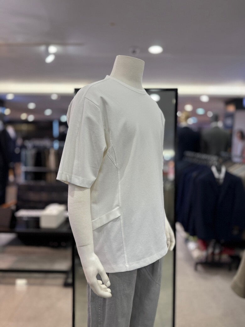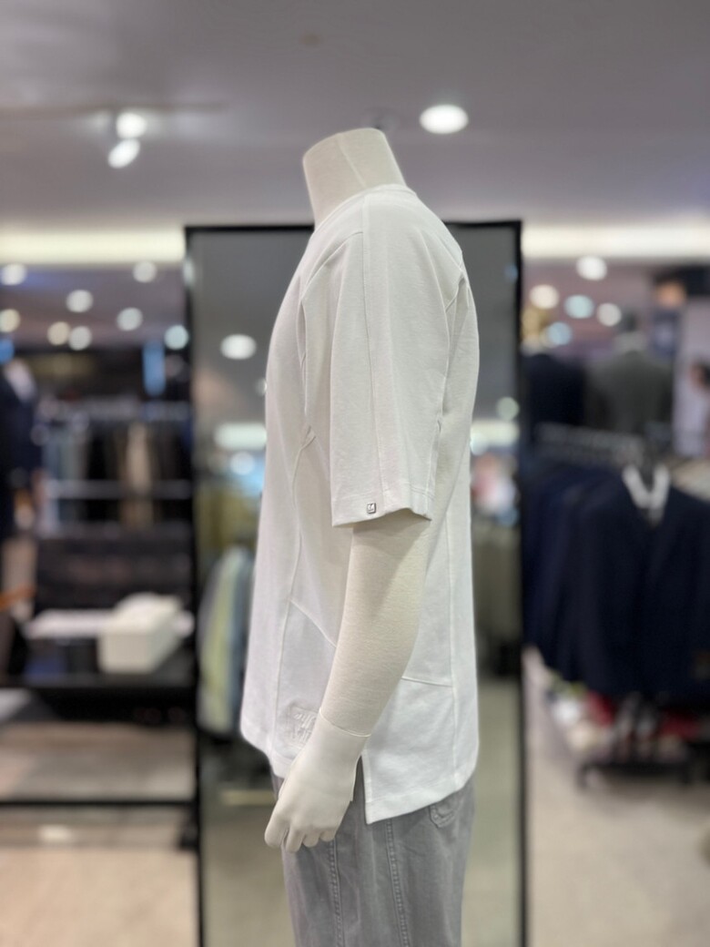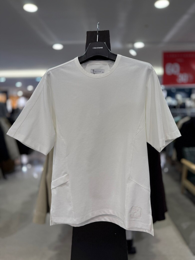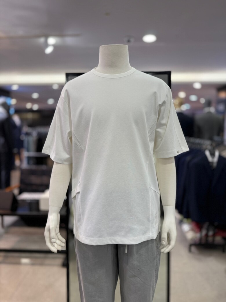 리버클래시 화이트 세미오버핏 라인절개 포인트 반팔 티셔츠 LLM41583