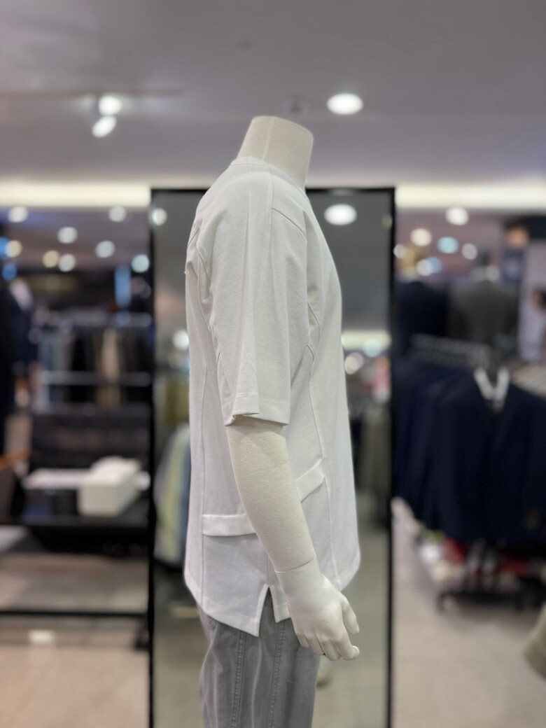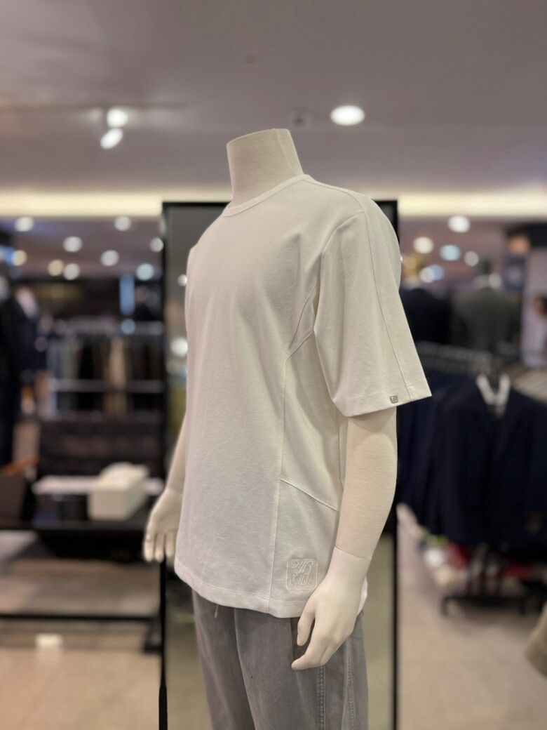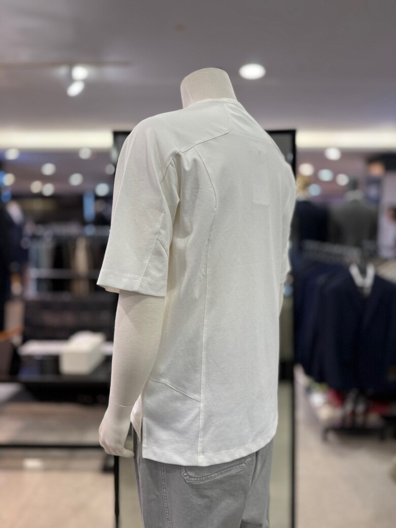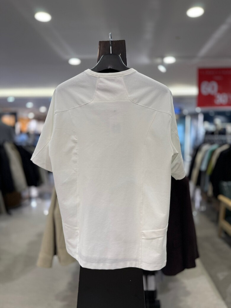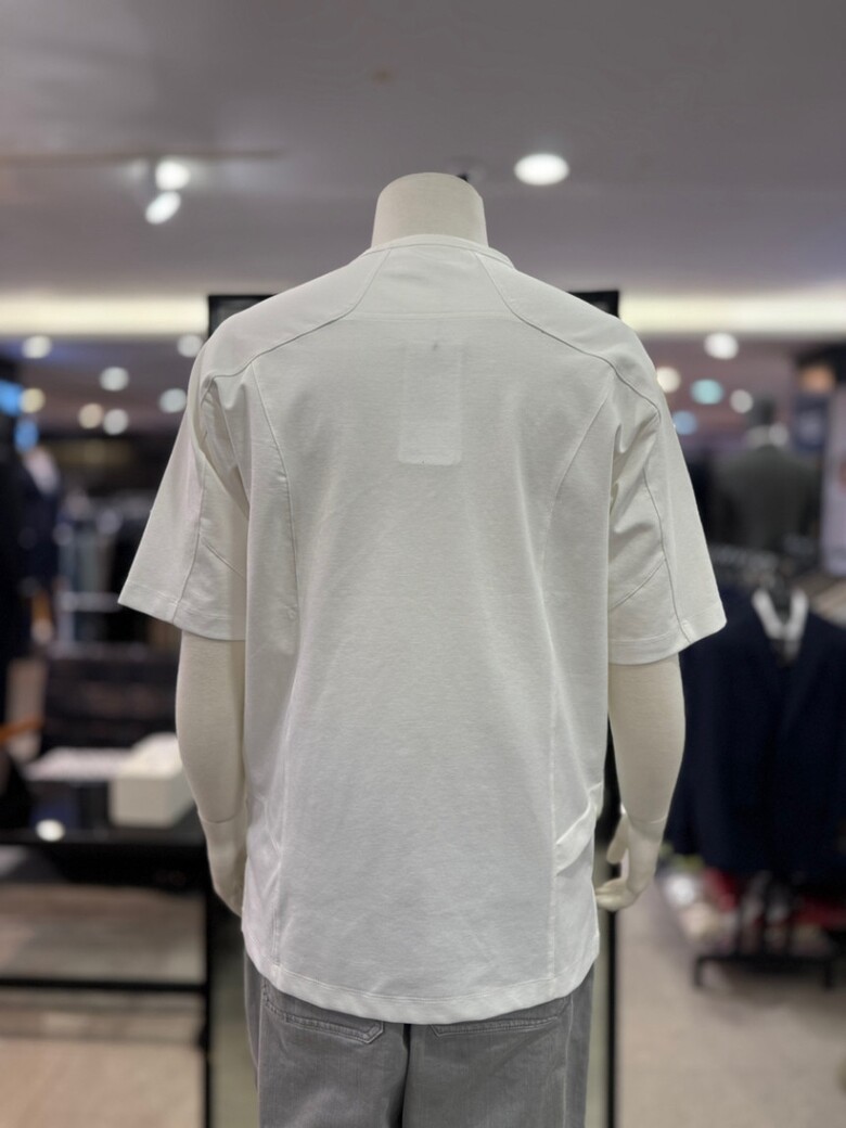 리버클래시 화이트 세미오버핏 라인절개 포인트 반팔 티셔츠 LLM41583