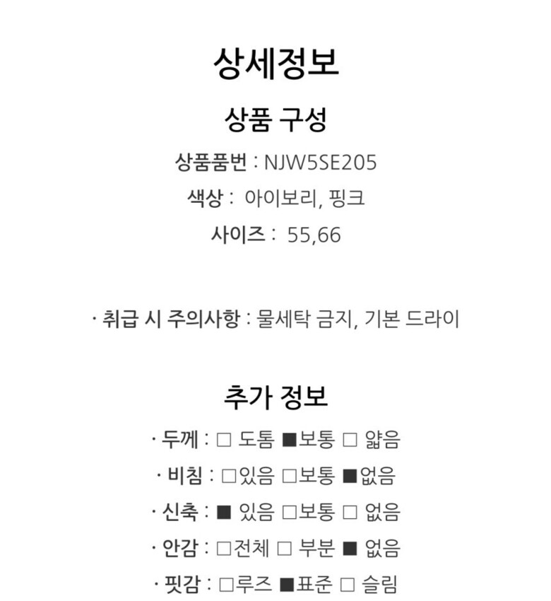 | 6. 세탁방법 및 취급시 주의사항 | 상품상세참조 |