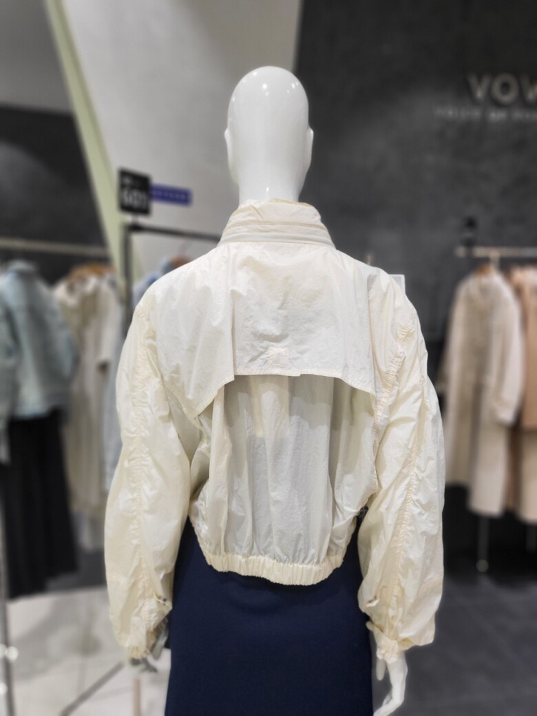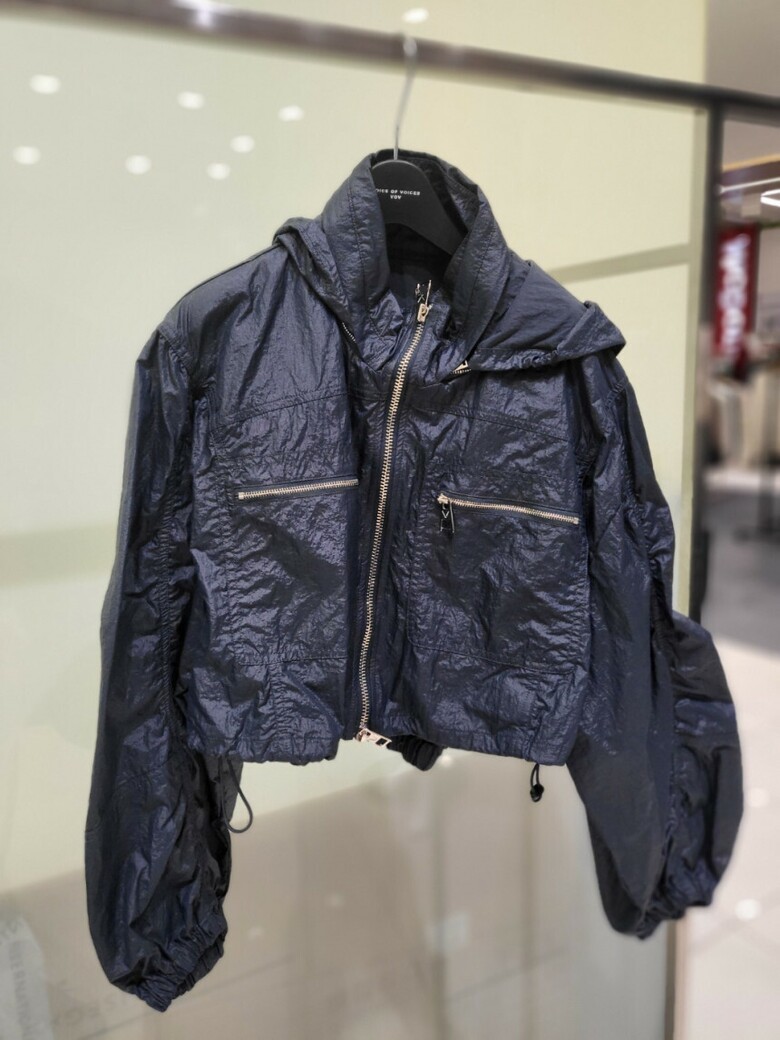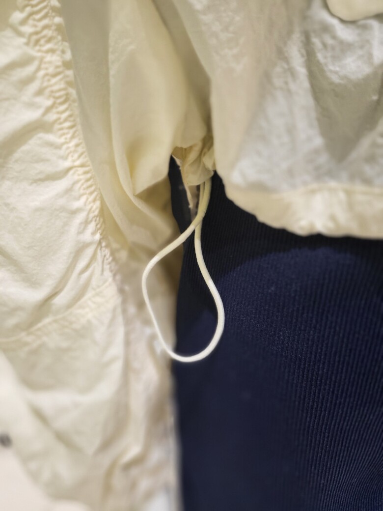 세미 크롭 기장에 밑단 스트링을 넣어 볼륨감 있는 트렌디한 실루엣이며 ,
