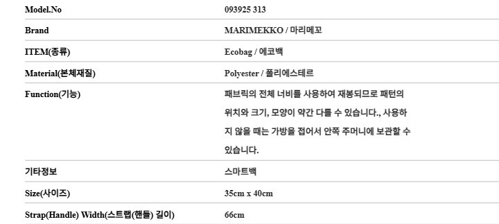 마리메꼬 093925 313 우니꼬 스마트백 에코백 가방