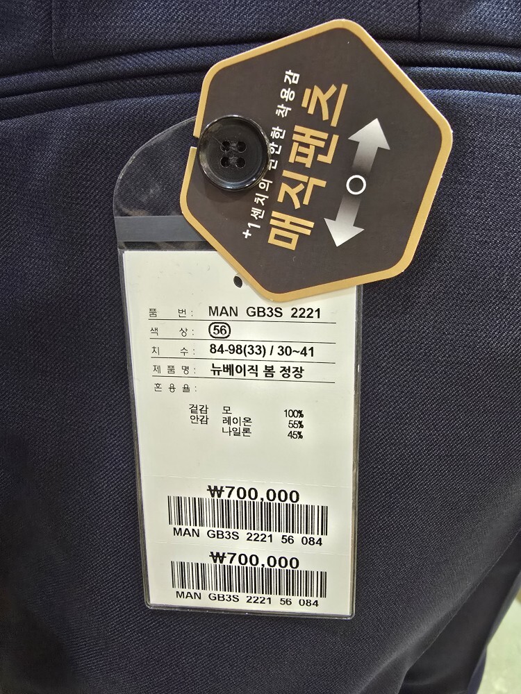 인디안 프리미엄원단 울100 봄 정장세트 자켓MAN-GA3S-2221와 세트입니다.
