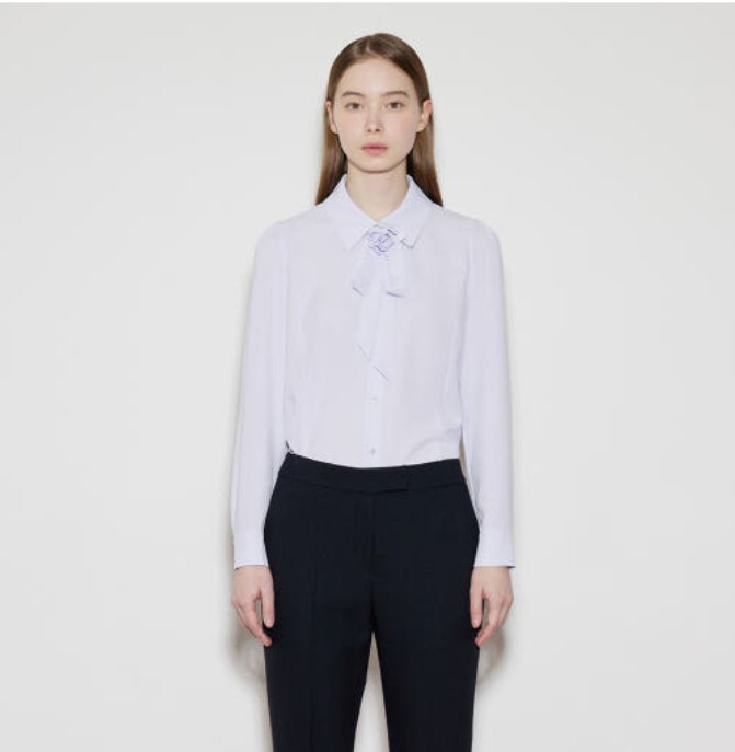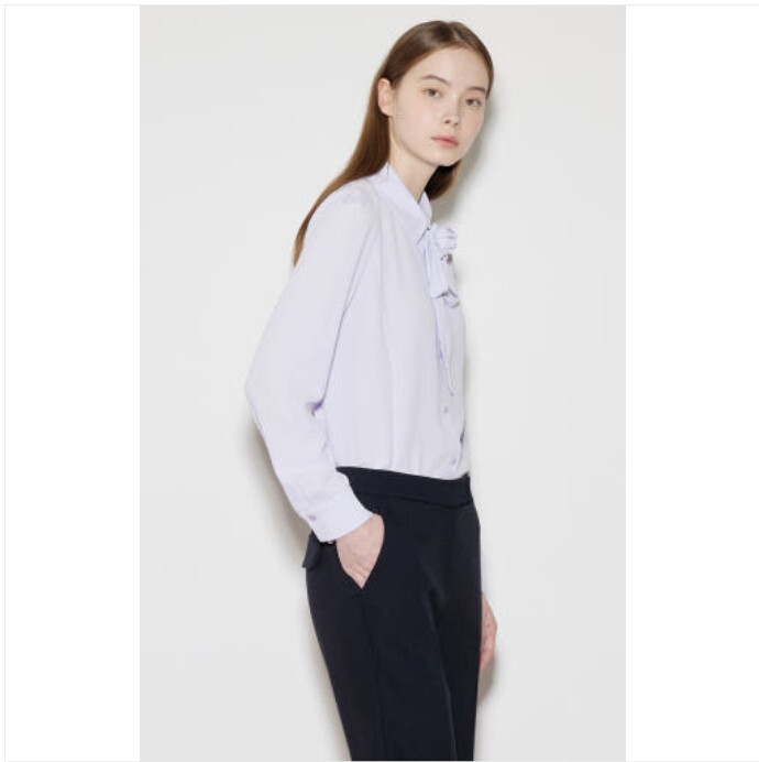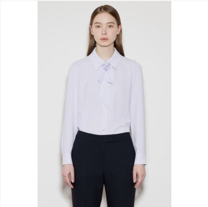 리본 코사지 디테일이 포인트가 되는 블라우스입니다.