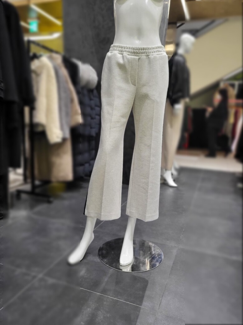 긴 가장감의 플레어 핏으로 다리가 더욱 길어보이는 실루엣이며 ,