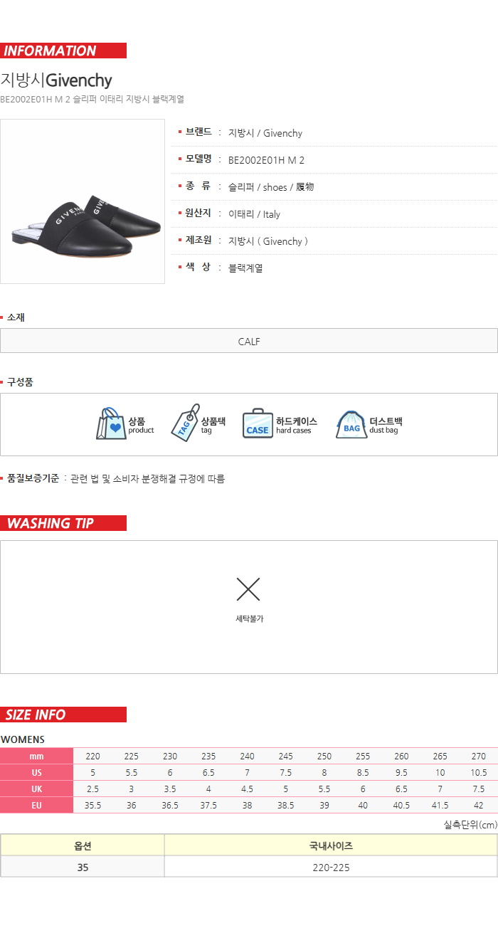 [명품] 지방시 레더 로고 뮬 슬리퍼 블랙 35 BE2002E01H