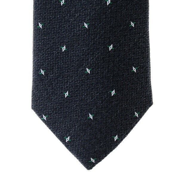 차분한 컬러감의 바닥에 변형 다이아몬드 마이크로 모티브를 사용한 올오버 실트 넥타이