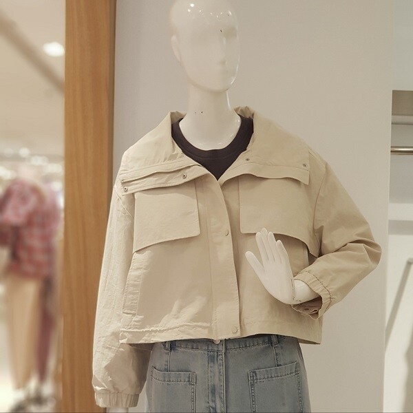 면혼방소재감의 가벼운 홑겹 숏점퍼입니다