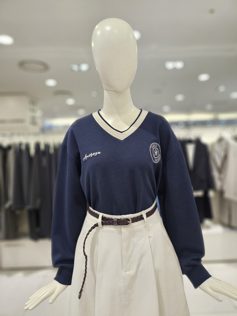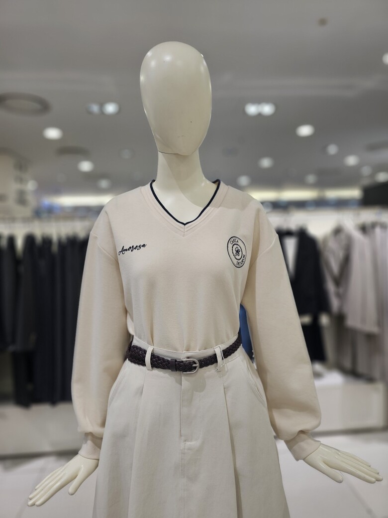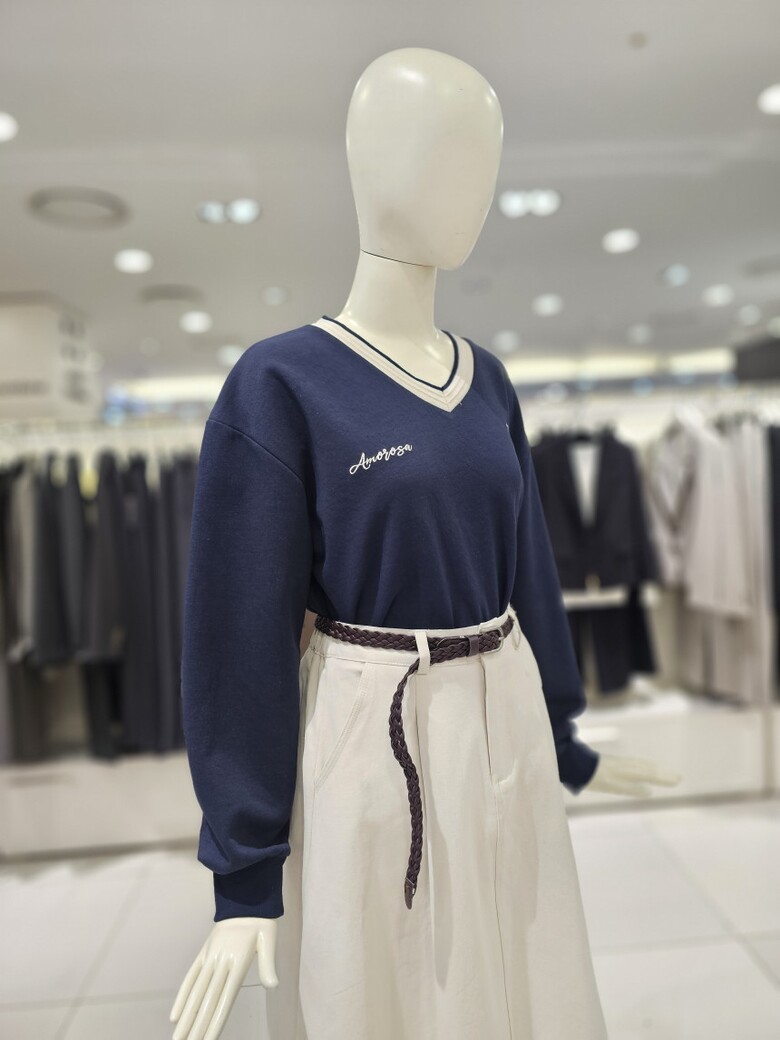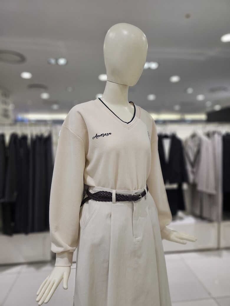 더 틸버리 자수 스트링 브이넥티셔츠TR3M0TS01W
