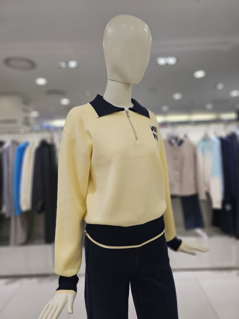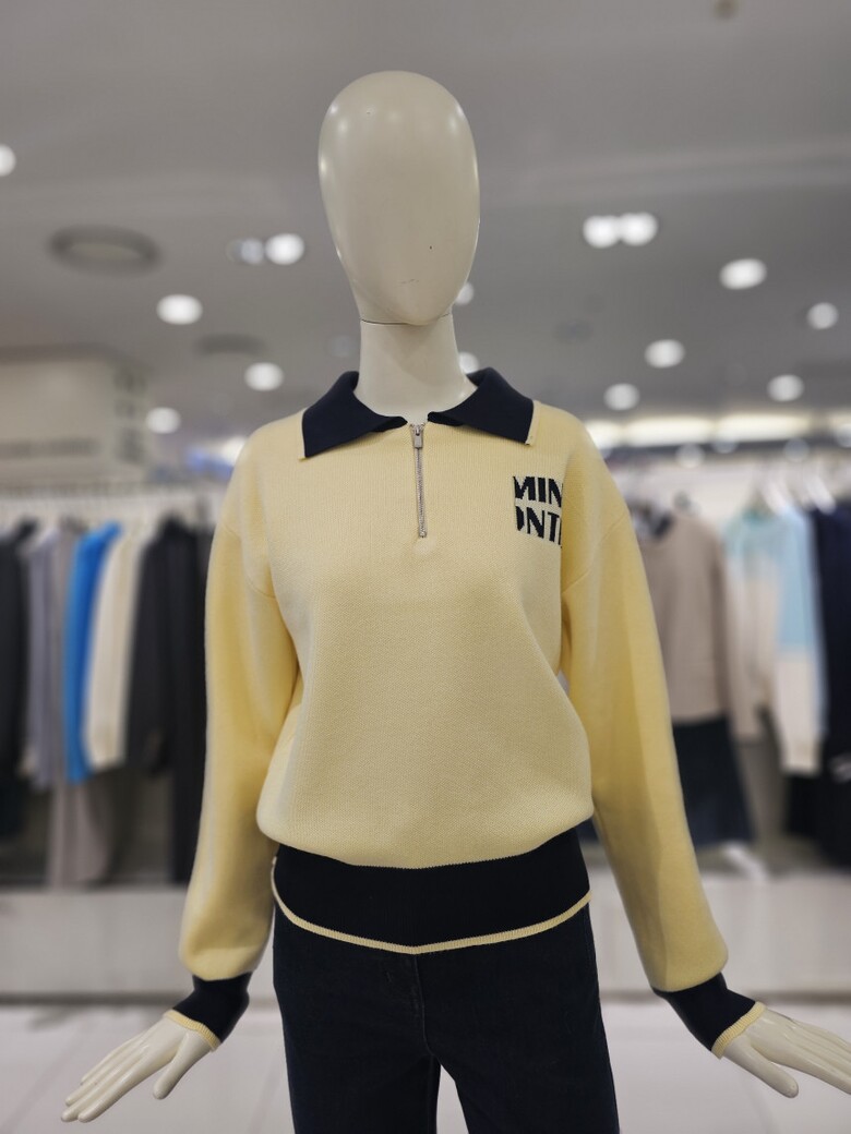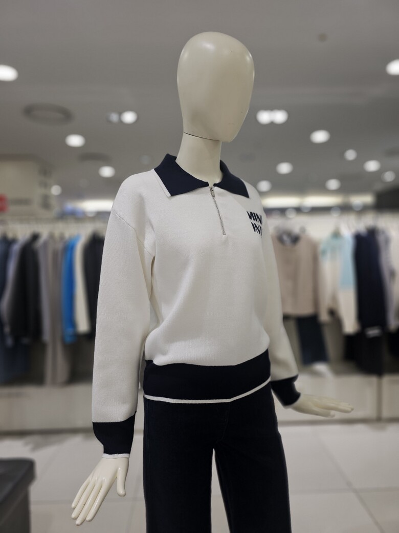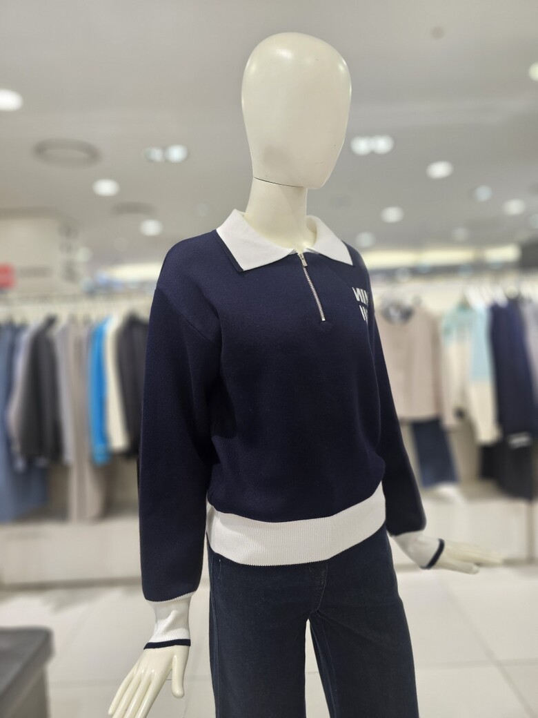 더 틸버리 배색 집업칼라 풀오버니트TR2M1PO63W