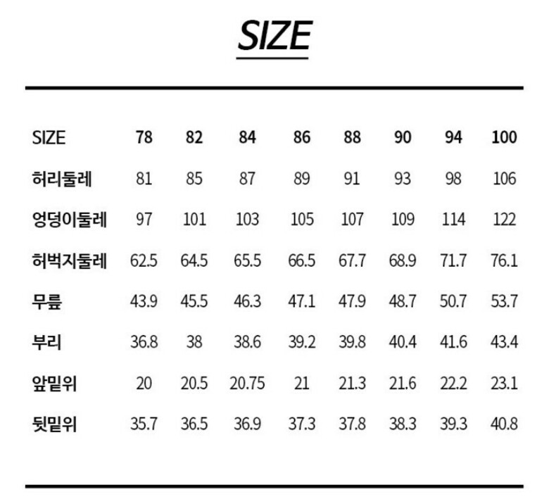 하의 - 78(29~30),82(31~32),84(32~33),86(33~34), 90(35~36), 94(37~38),100(39-40)