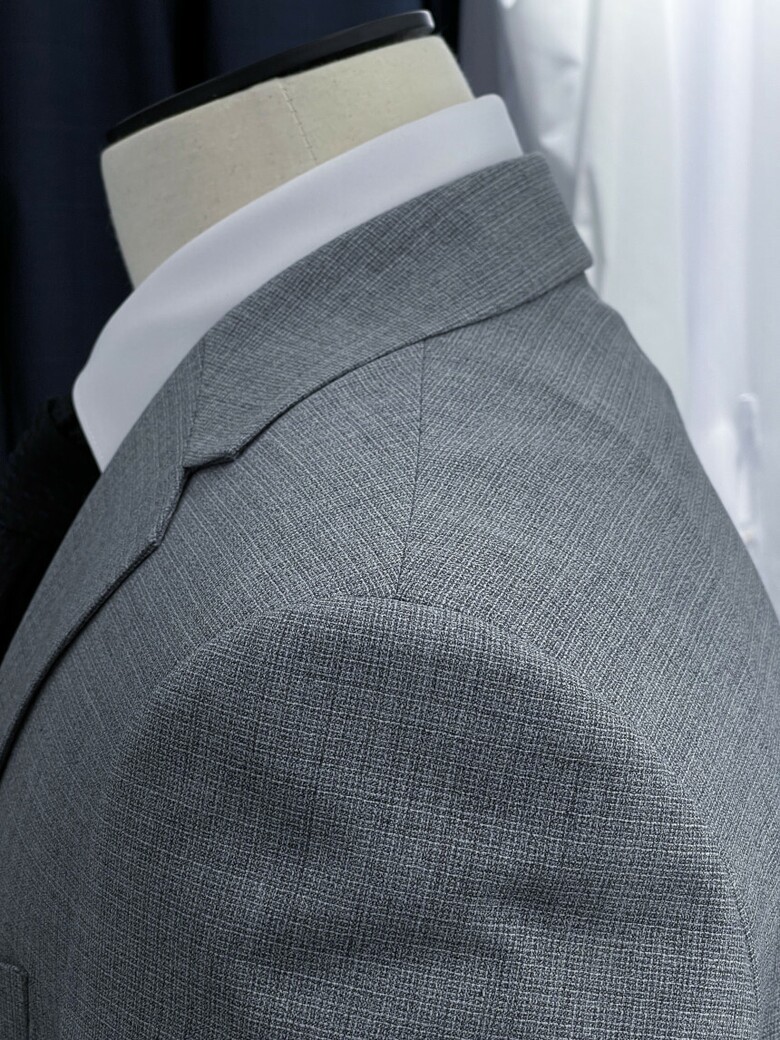 세련된 라이트그레이 색상의 정장입니다.