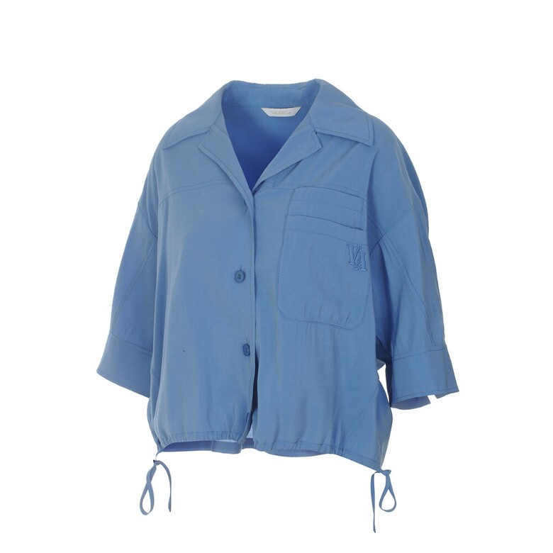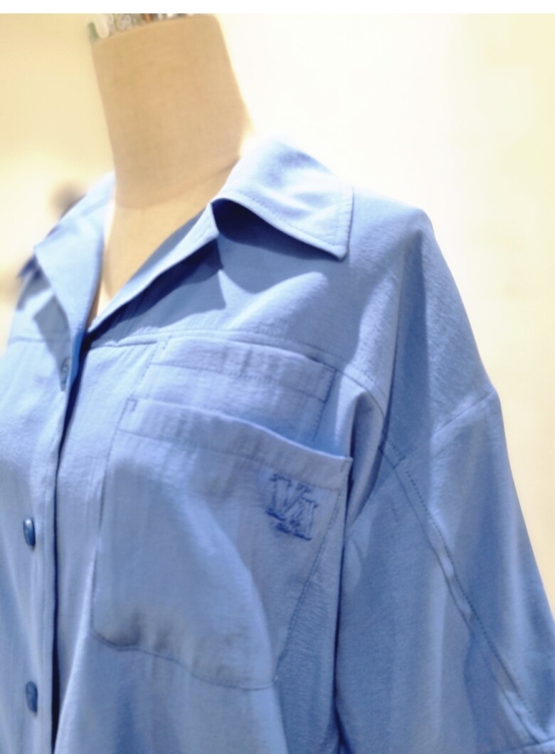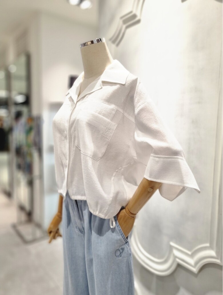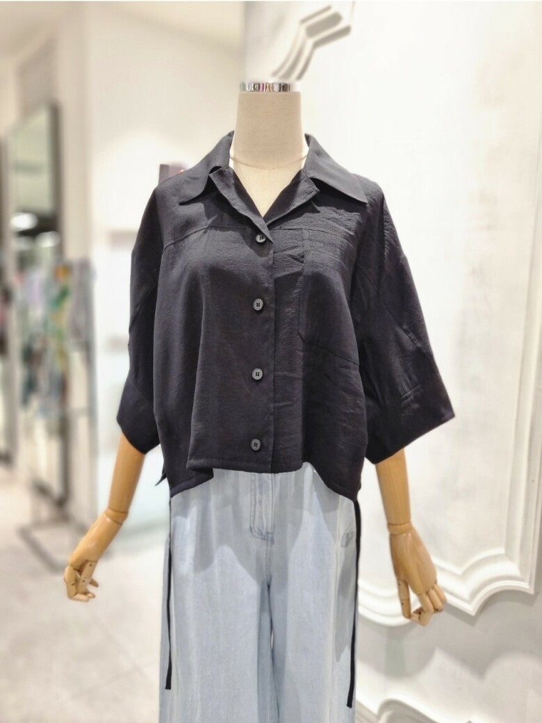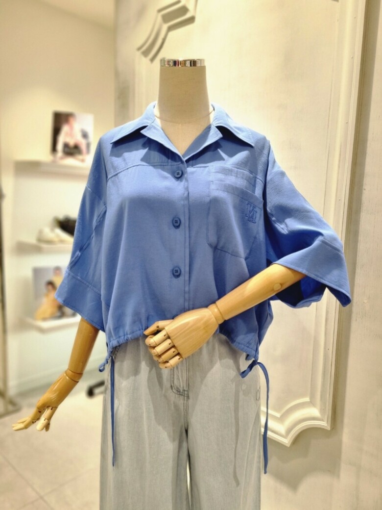 타이장식 셔츠형 블라우스