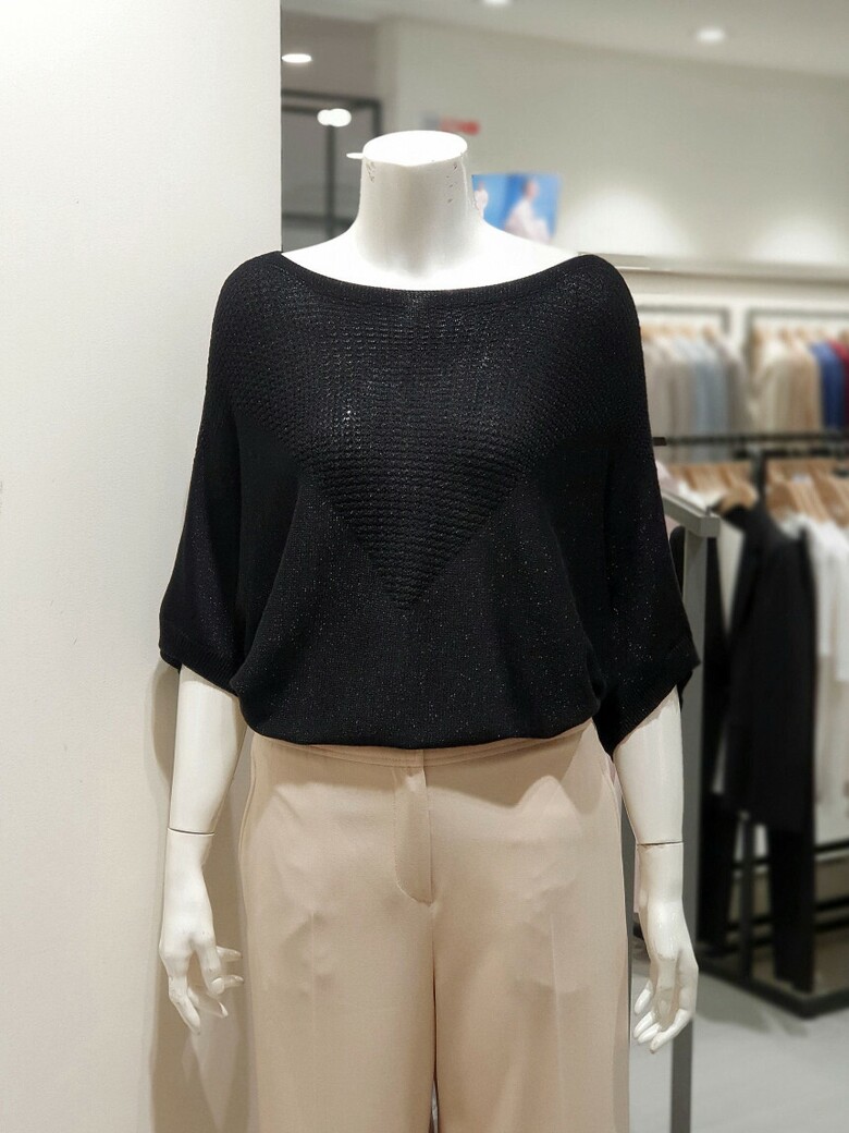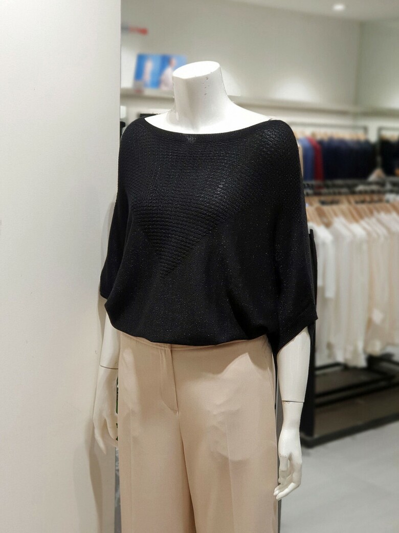 보트 넥 디자인으로 페미닌한 포인트를 주며