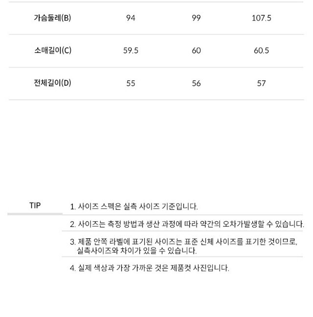 3. 치수 상품상세참조