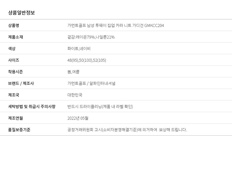 골피아 GMKCC204 가먼트골프 남성 투웨이 카라 니트 가디건