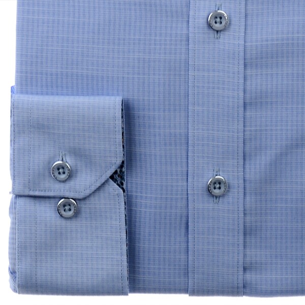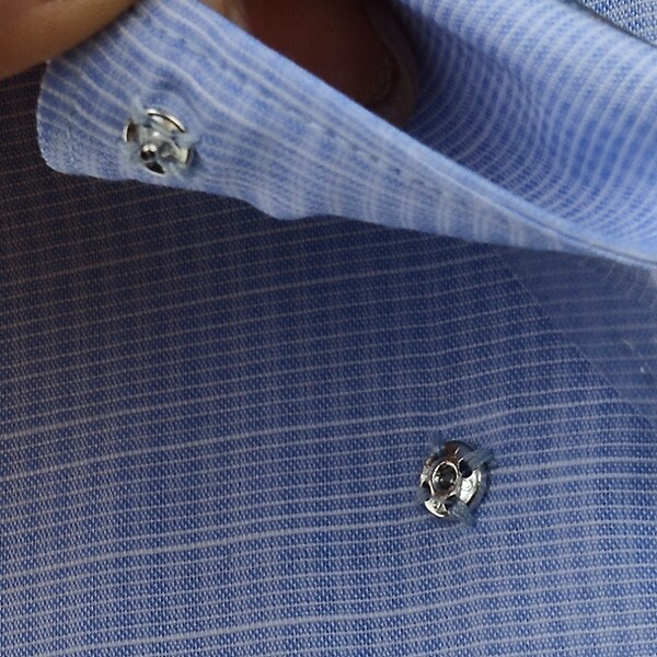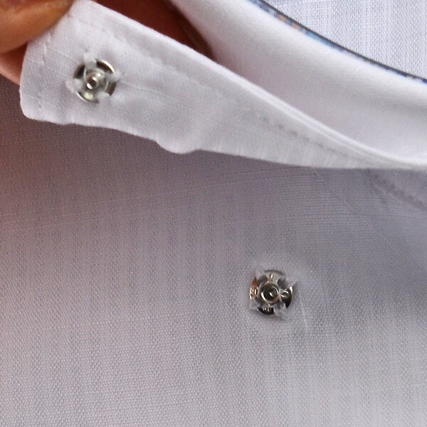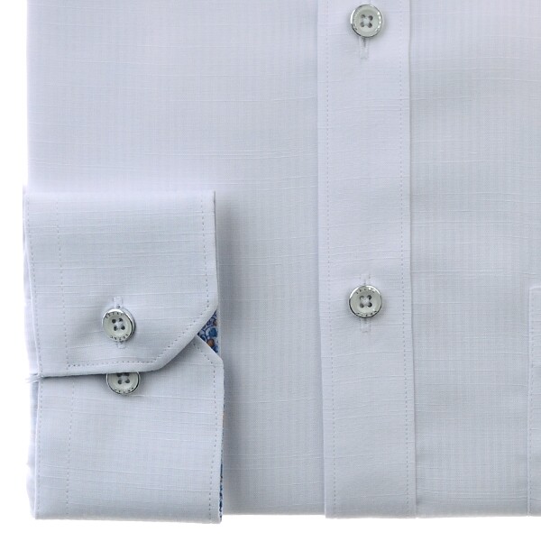 경량 도비 조직의 폴리모달 혼방 소재를 사용한 폴리에 슬럽을 주어린넨라이크한 느낌을 주고 친환견 소재로 부드러운 터치감과 청량감을 주며 구김이 적은 장점을 가진 카라와 카우스 안쪽에 배색을 넣고?카라에 스냅을 달아 놓은 여름철 긴소매로 착용 가능한 일반핏 긴소매