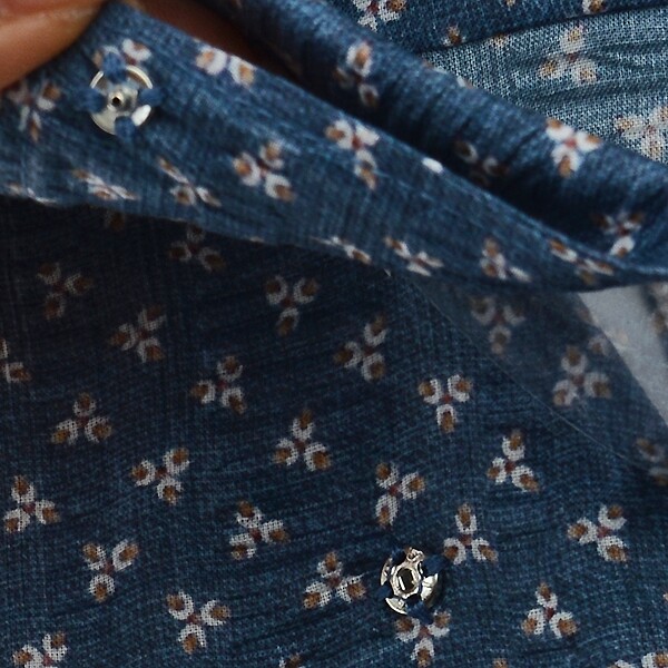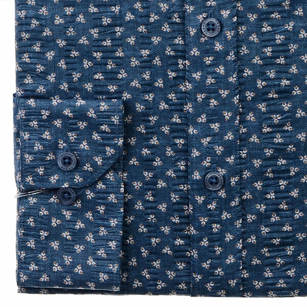 잔잔한 모티브와 페이드 아웃된듯한 자연스러운 컬러감이 멋스러운 천연섬유에 요철감을 준 소재로 매우 쾌적하고 착용감이 좋으며다림질이 필요 없어 관리가 편한 경량 코튼 100 리플 서커 일반핏 긴소매