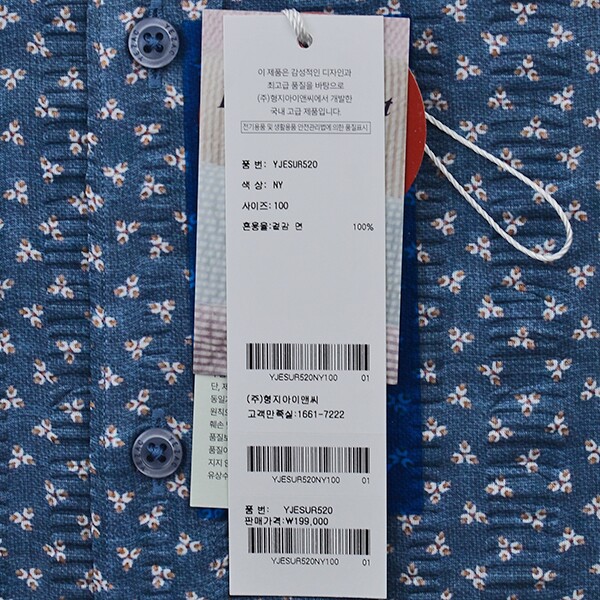 | 1. 제품 소재 (섬유의 조성 또는 혼용률을 백분율로 표시, 기능성인 경우 성적서 또는 허가서) | 면100% |