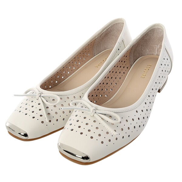 EQEMST703WH_여성 펀칭 리본 플랫 슈즈