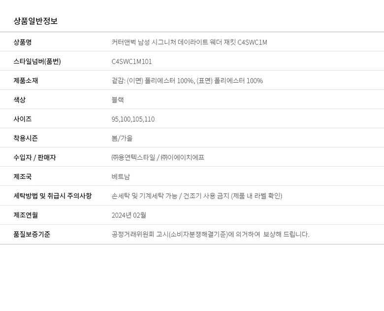 | 6. 세탁방법 및 취급시 주의사항 | 상세설명참고 |
